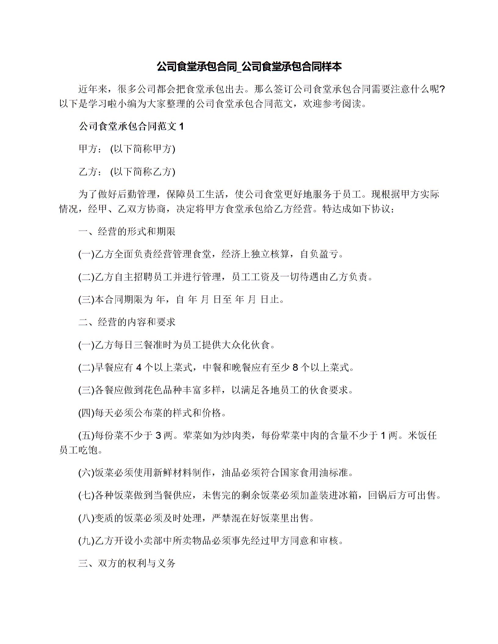 公司食堂承包合同_公司食堂承包合同样本