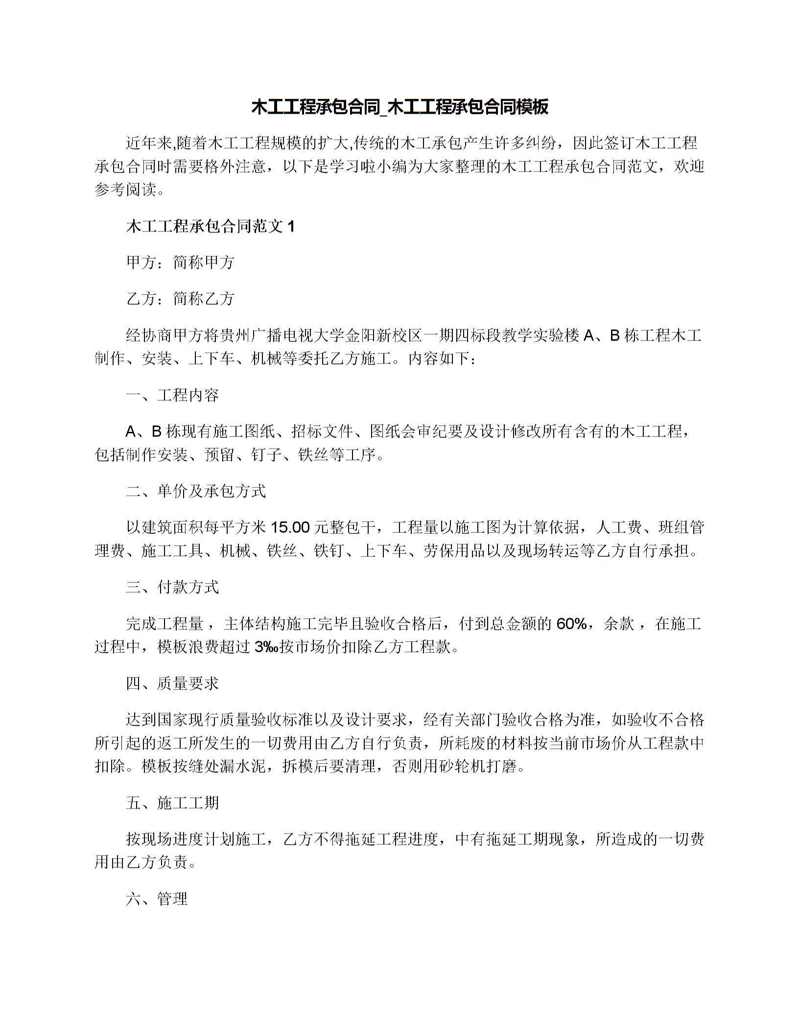 木工工程承包合同_木工工程承包合同模板