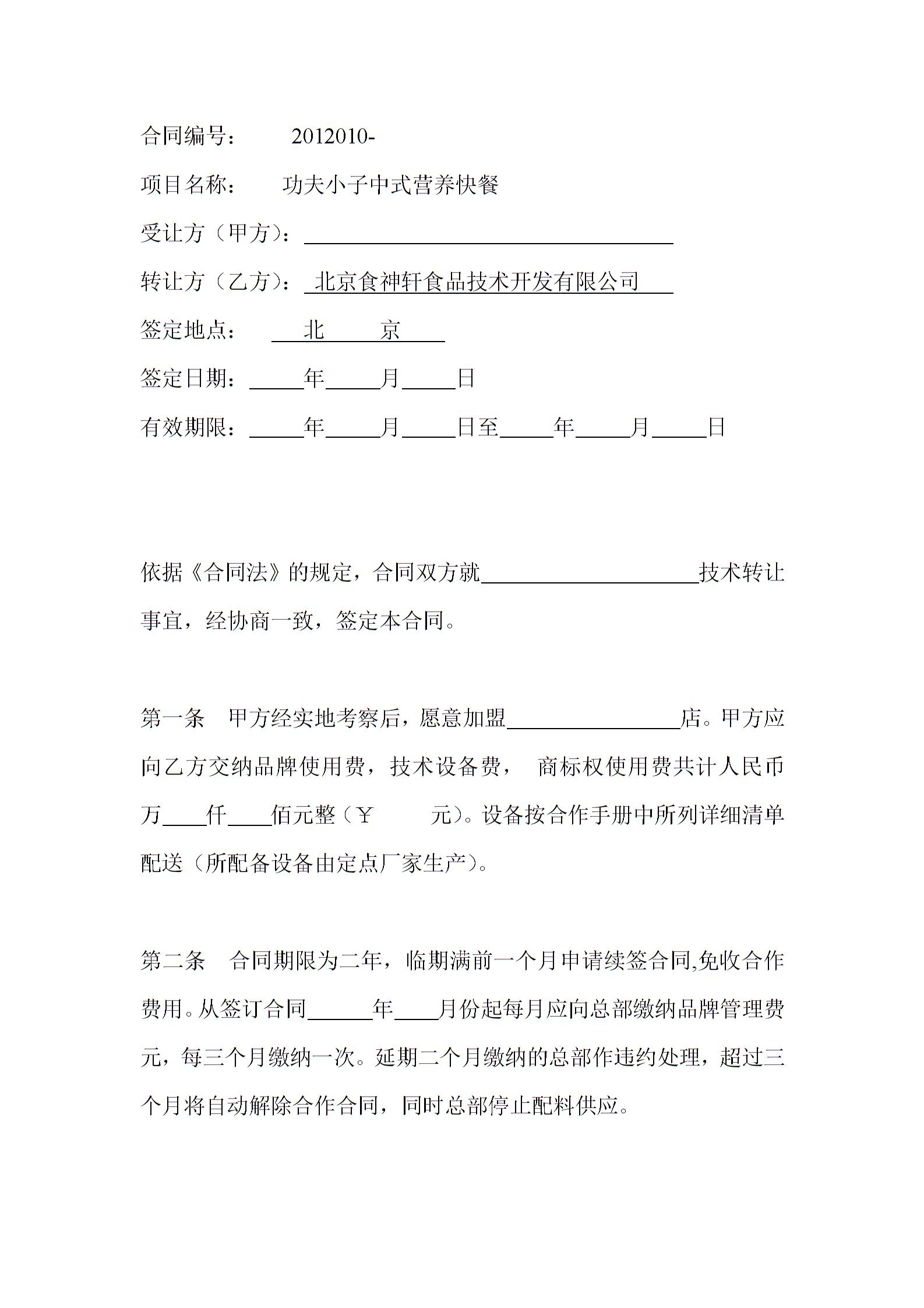 技术转让合作协议书