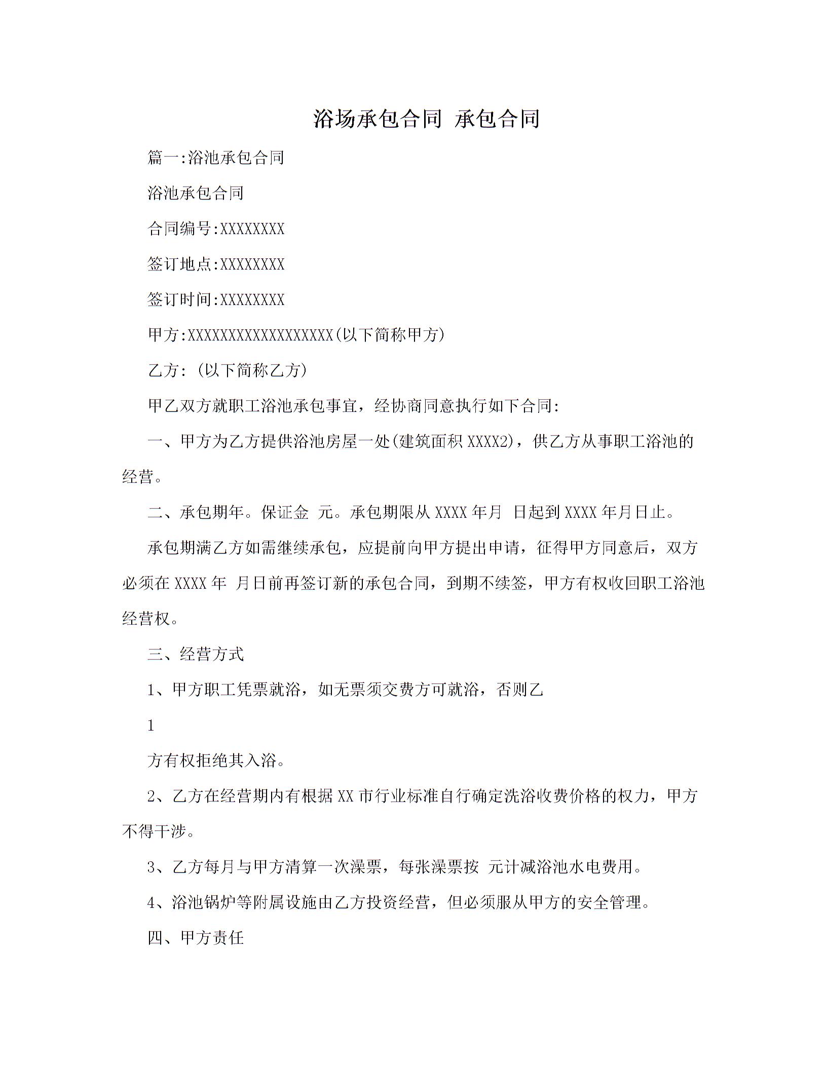 浴场承包合同 承包合同