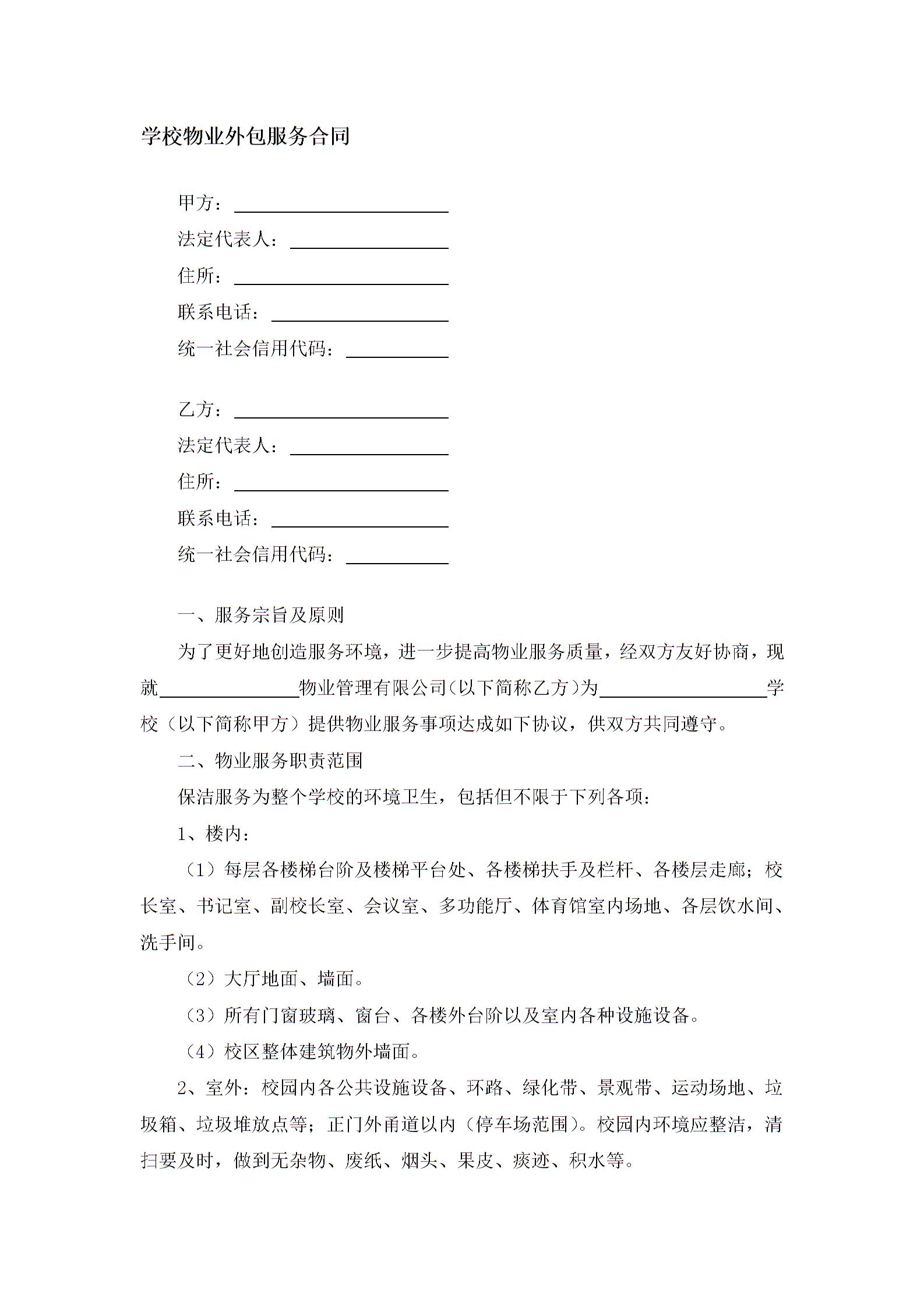 学校物业外包服务合同
