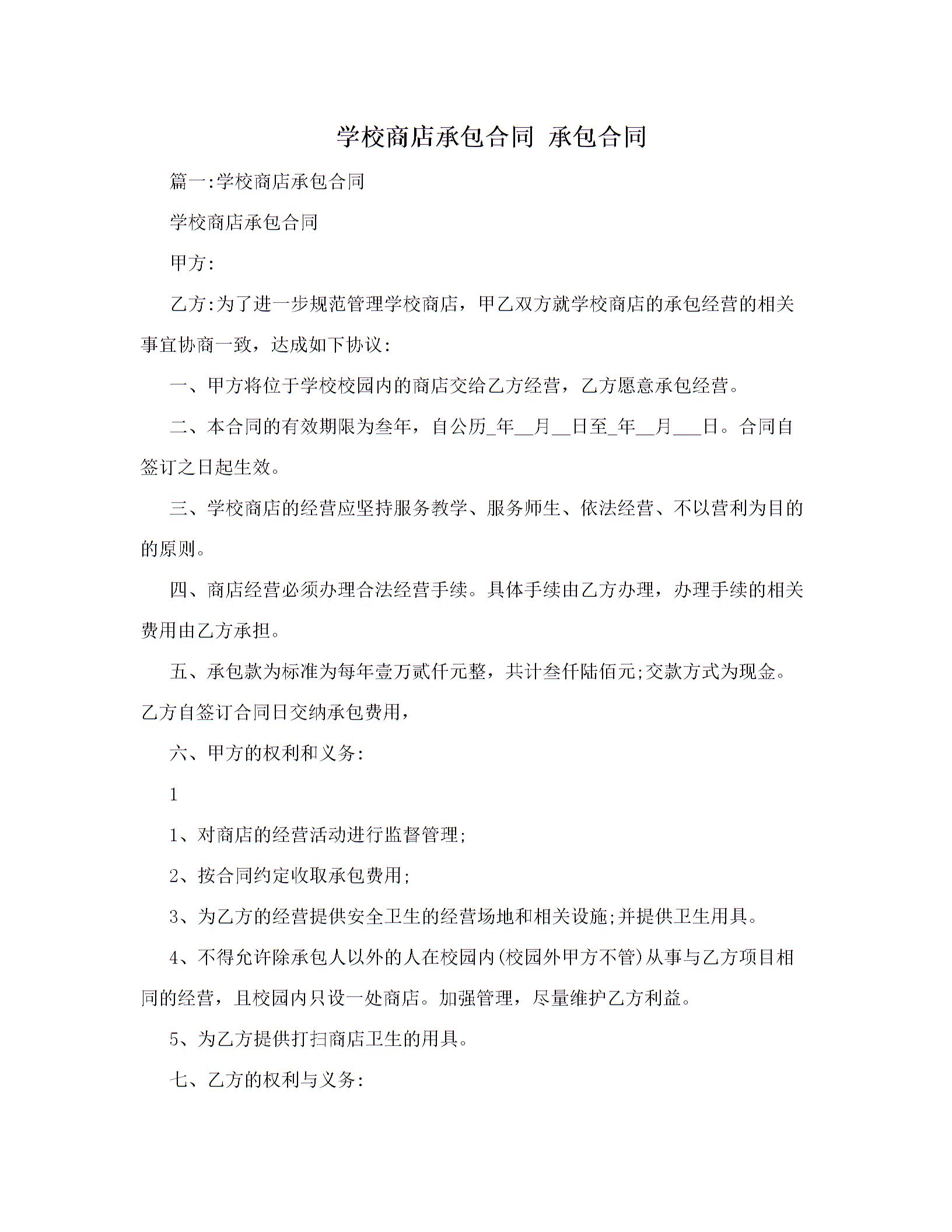 学校商店承包合同 承包合同