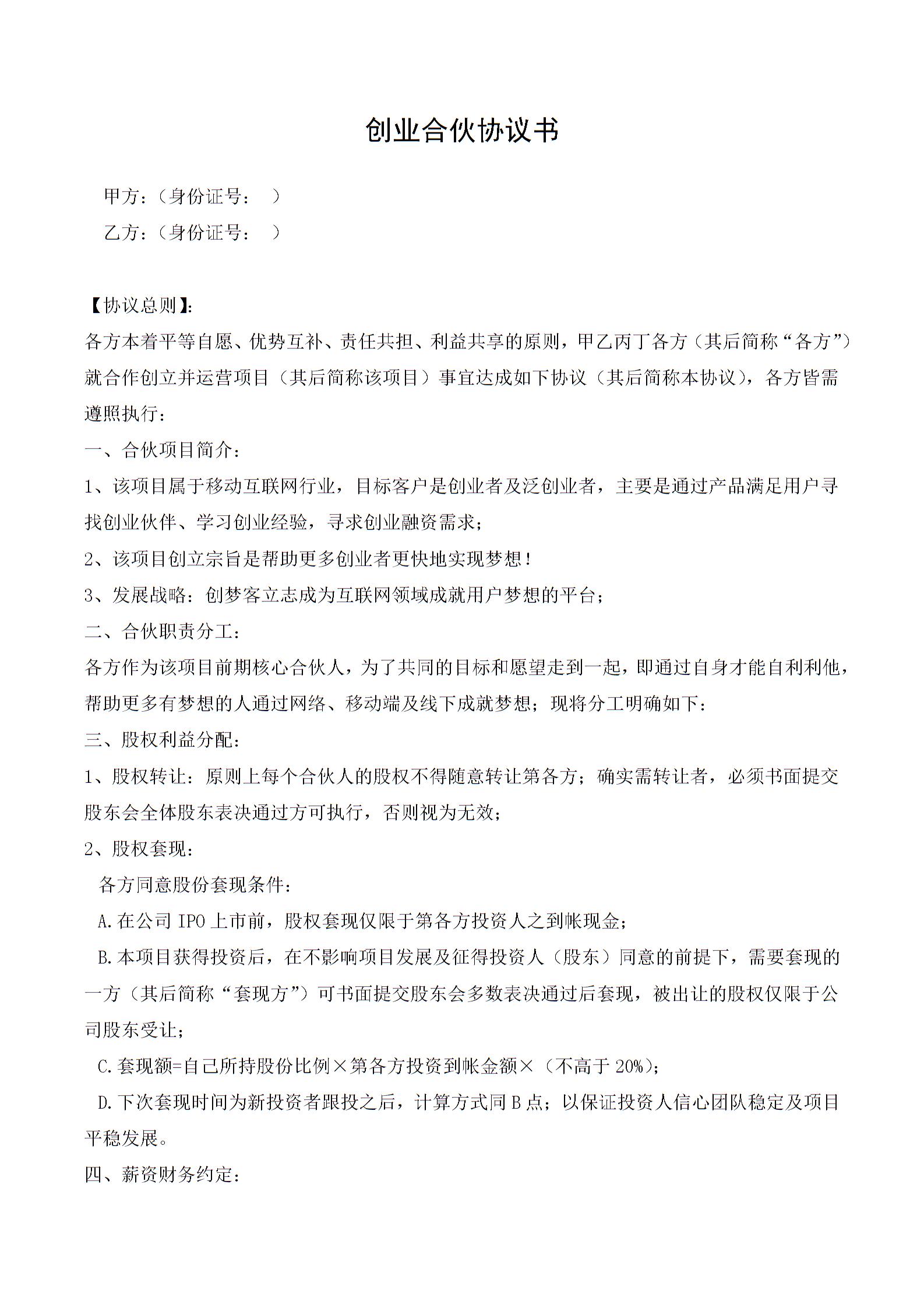 创业合伙协议书