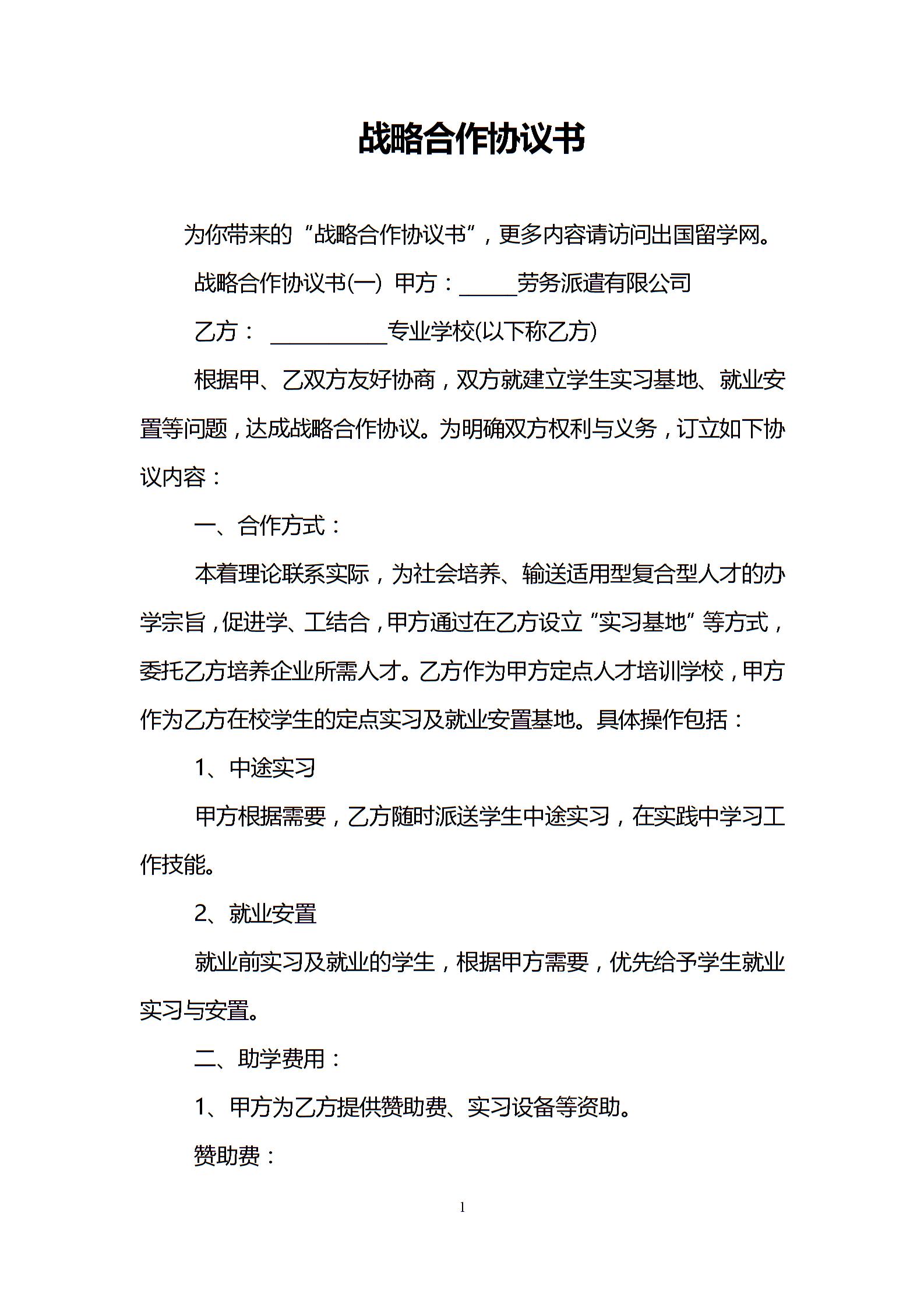 战略合作协议书
