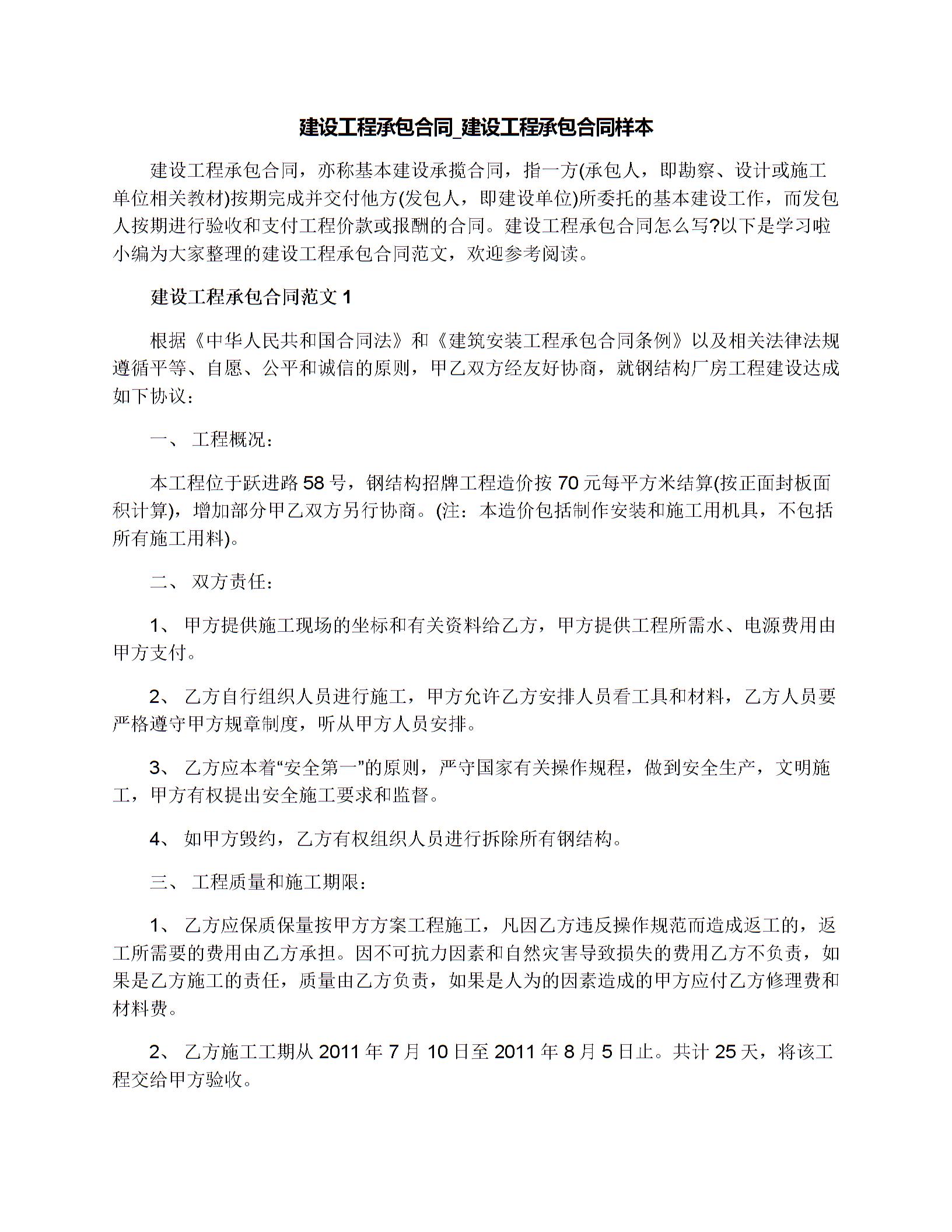 建设工程承包合同_建设工程承包合同样本