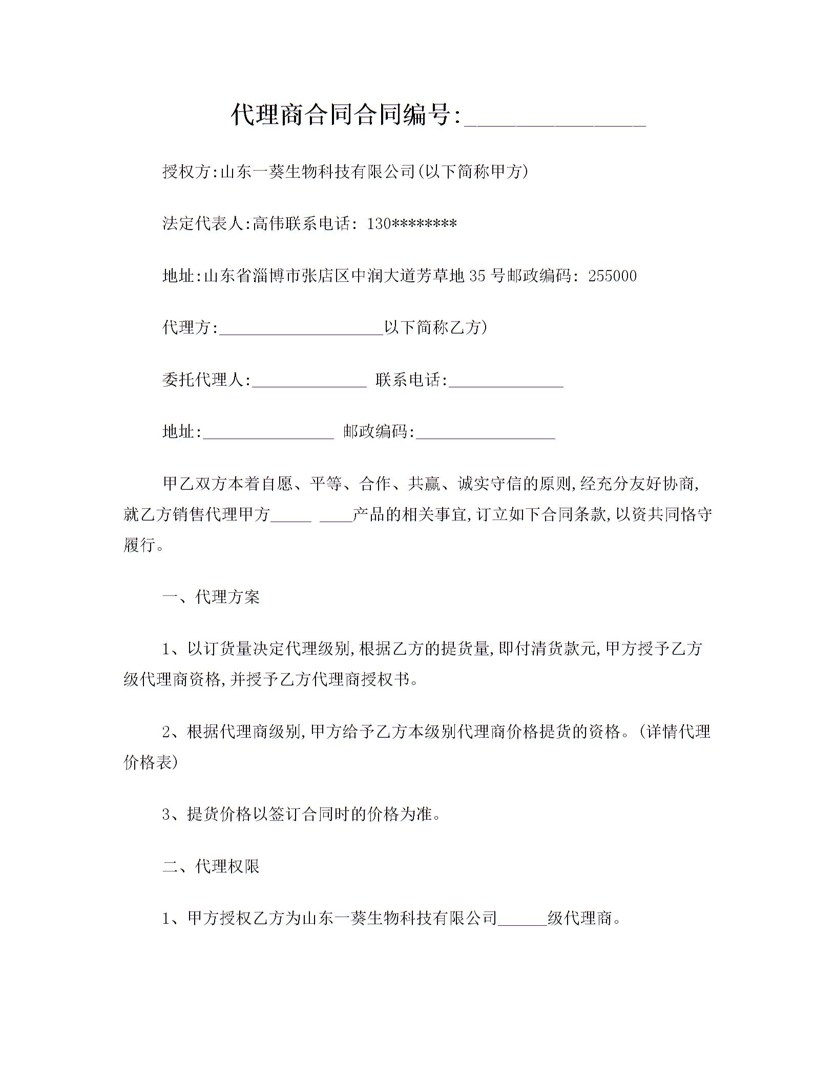 代理合同商业