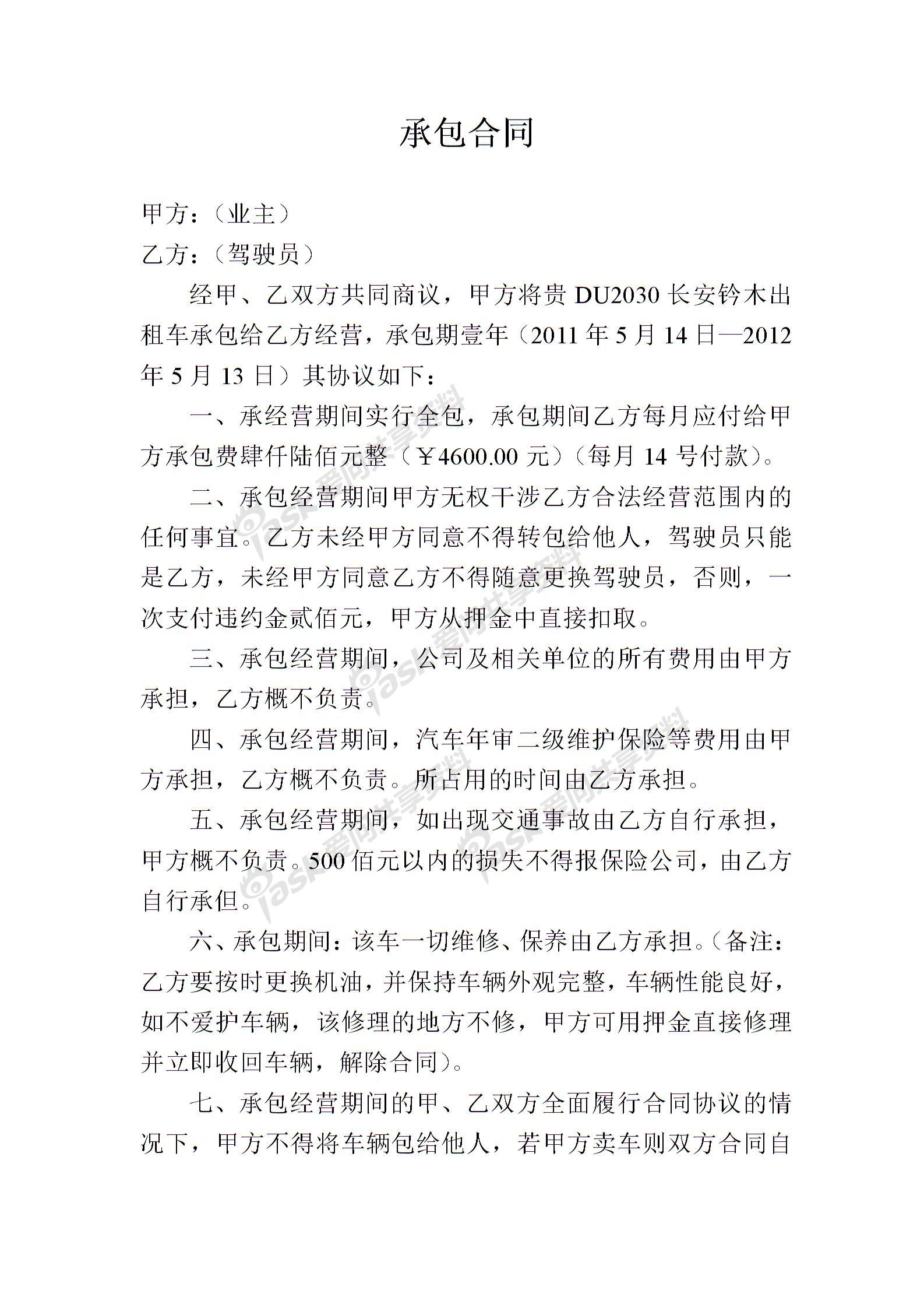 客运线路租赁承包合同下载