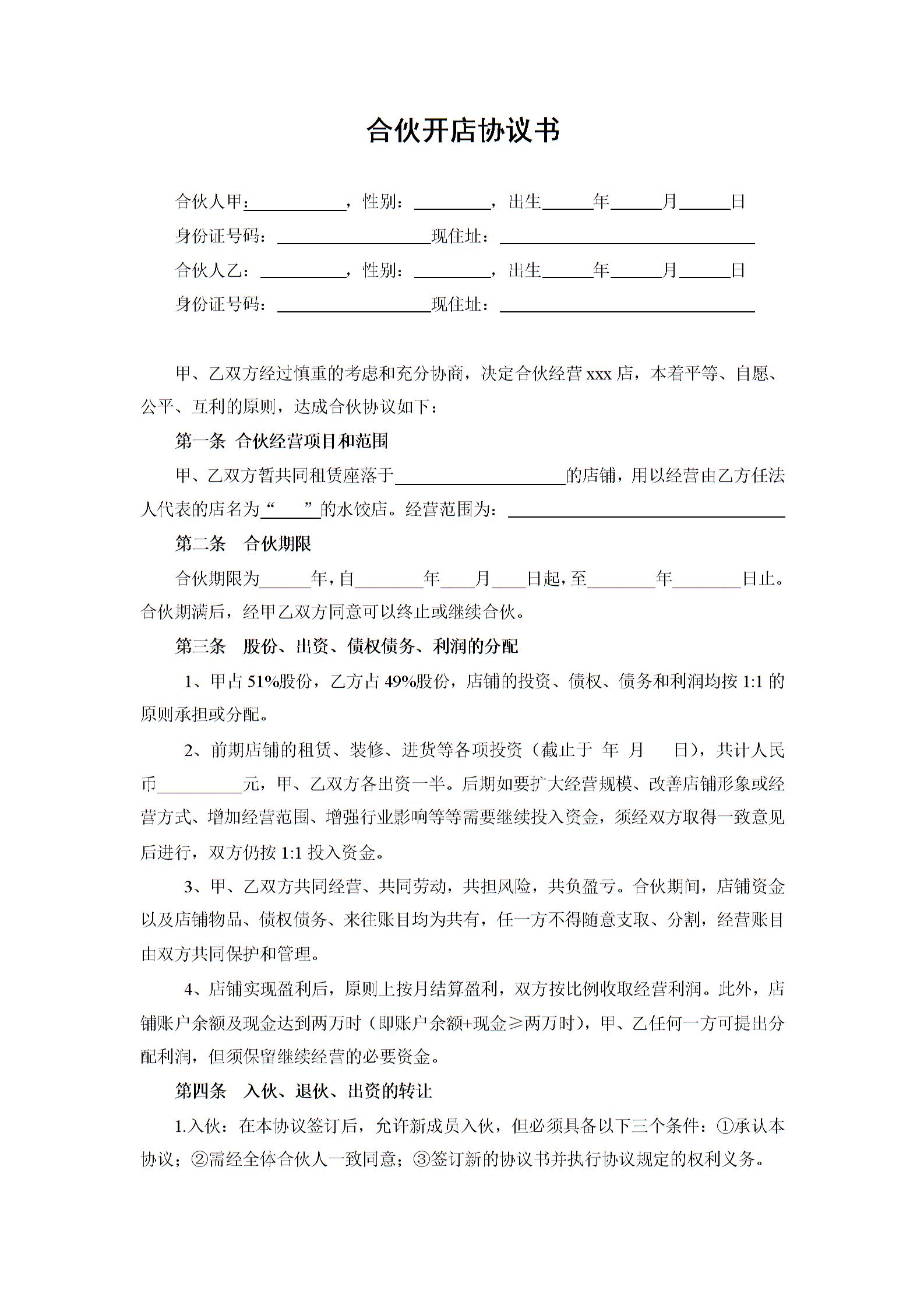 20XX两人合伙开店协议书