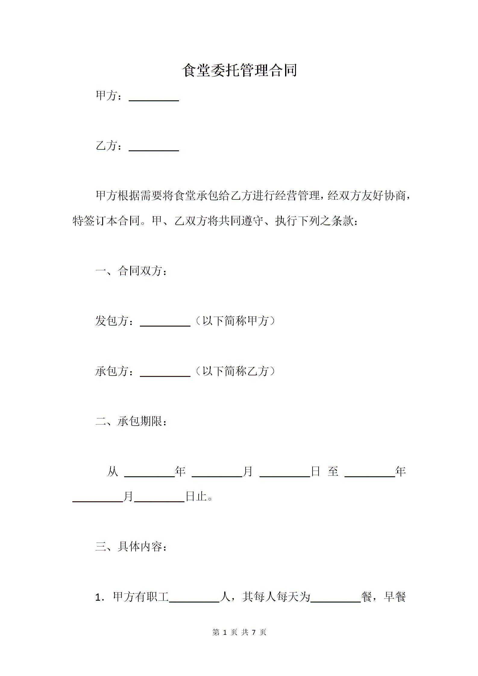 食堂委托管理合同