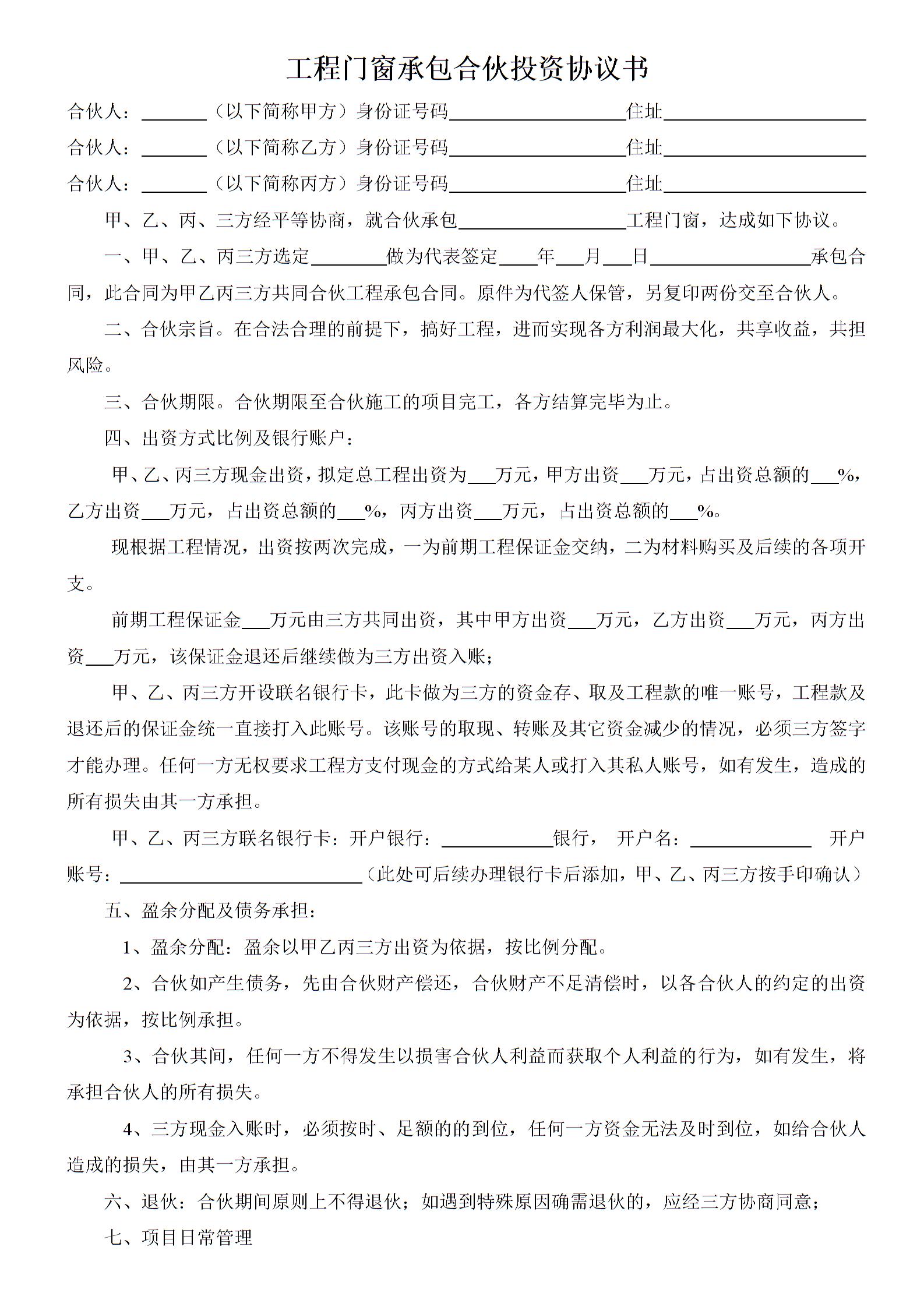 三人工程建设合伙协议书