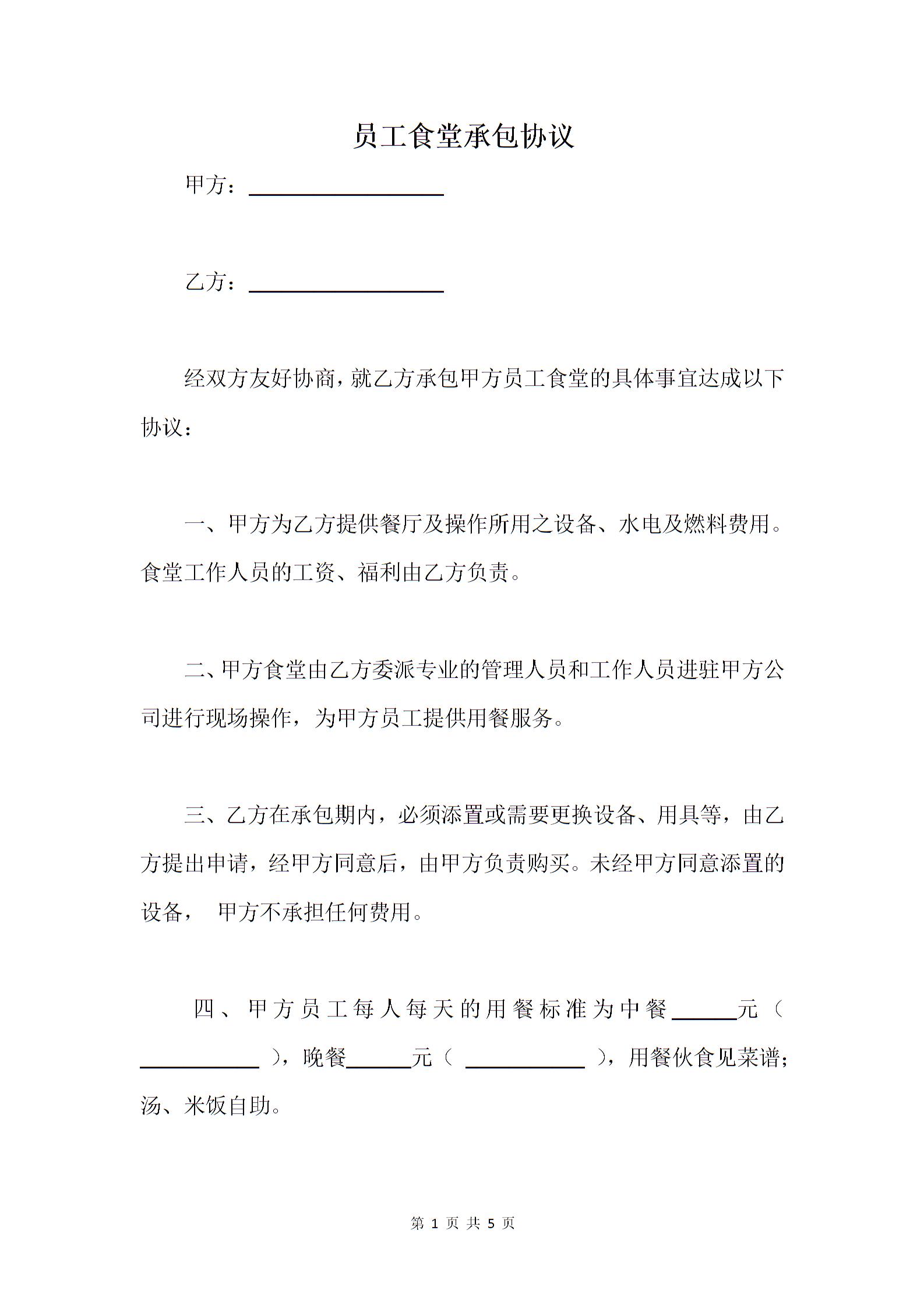 员工食堂承包协议