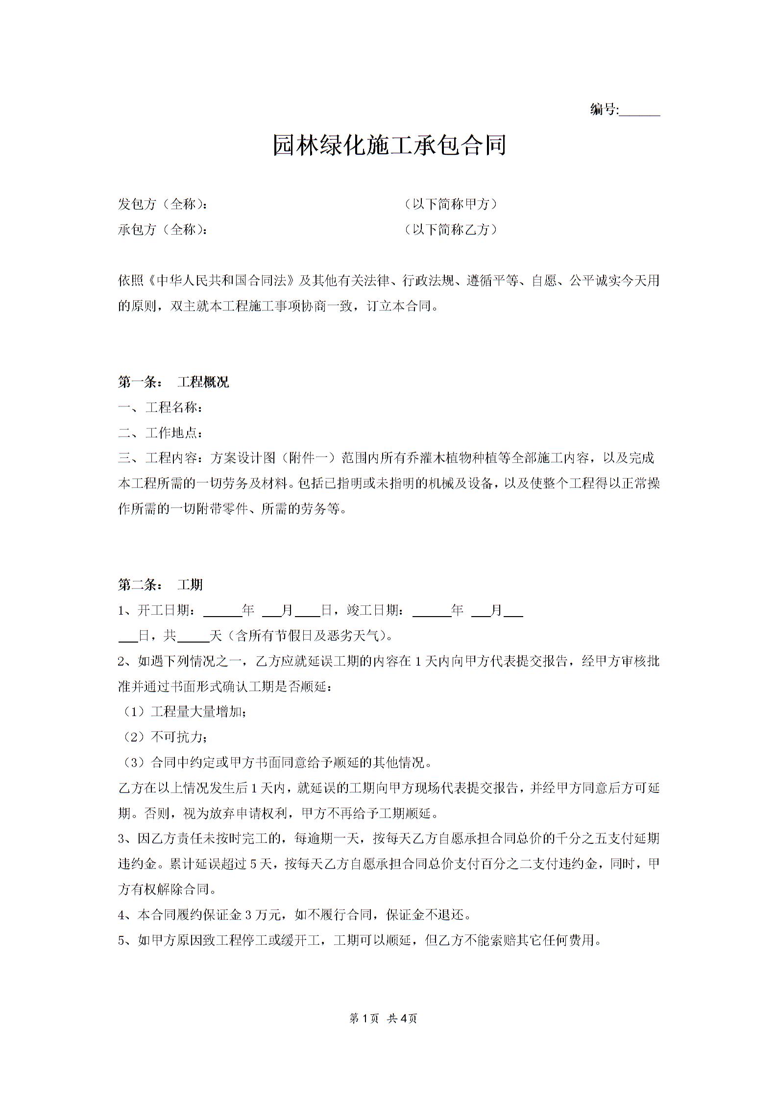 绿化施工承包合同