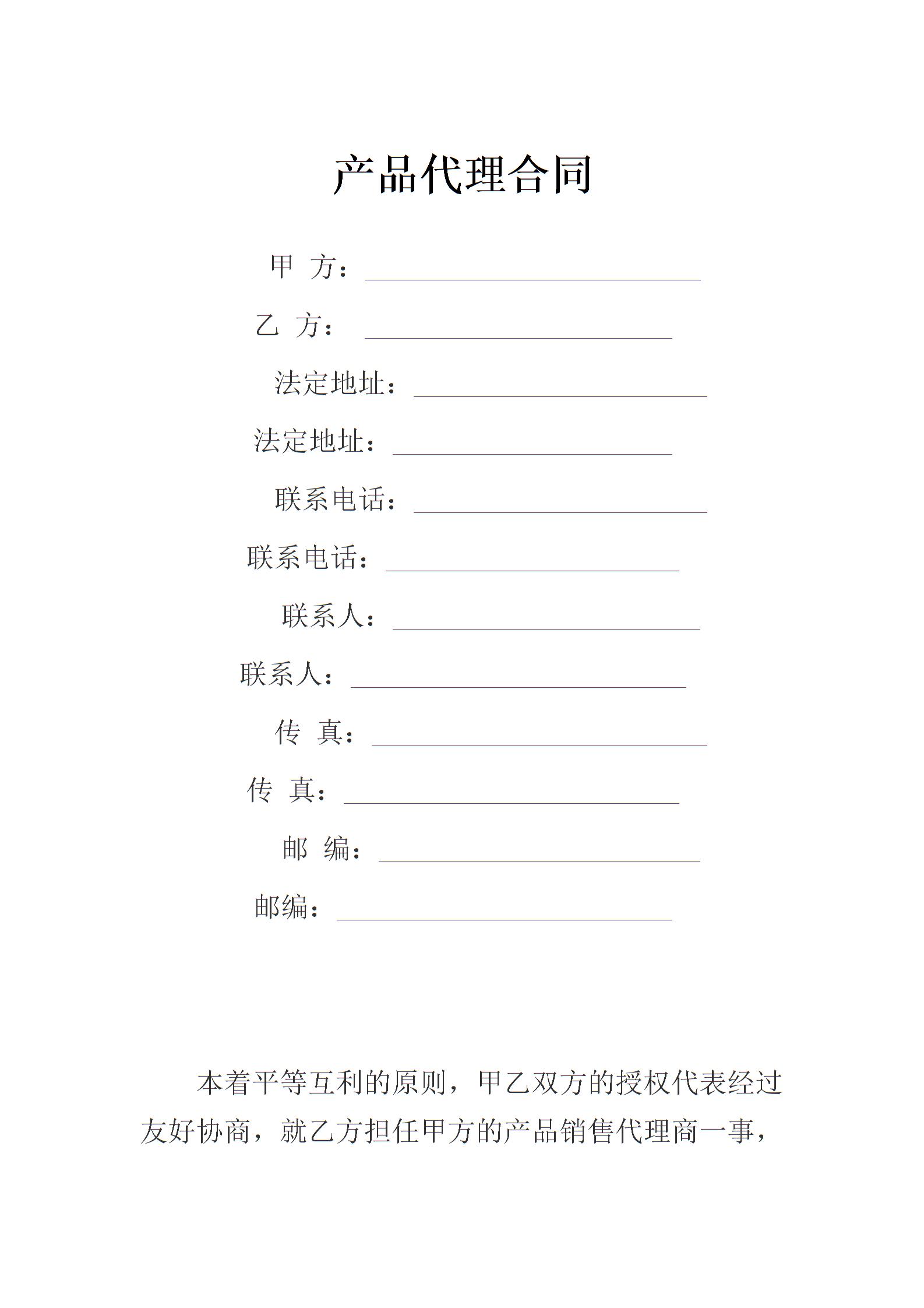 产品代理合同