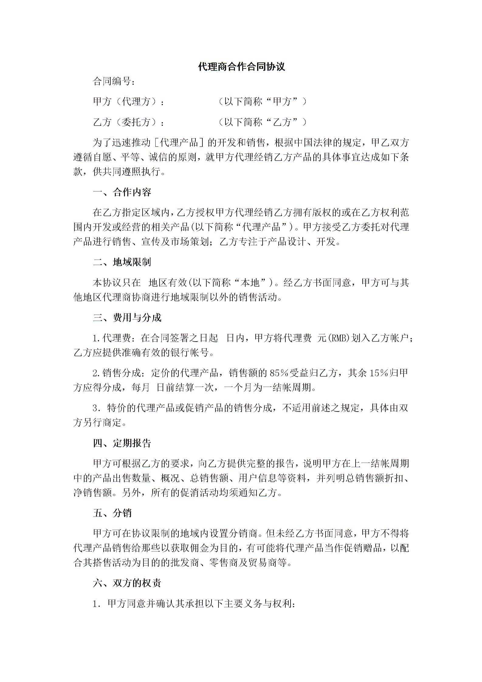 代理商合作合同