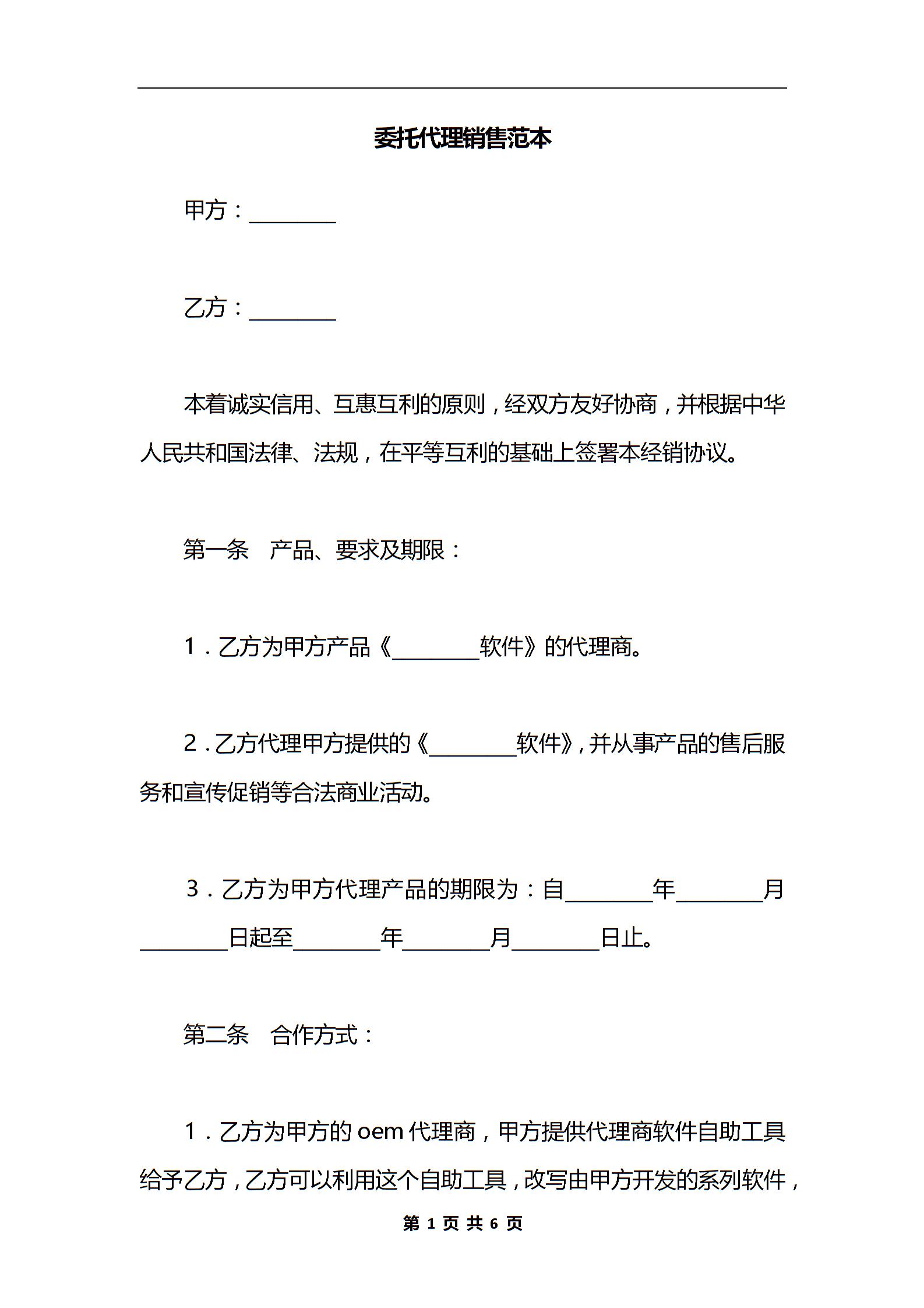 委托代理销售范本