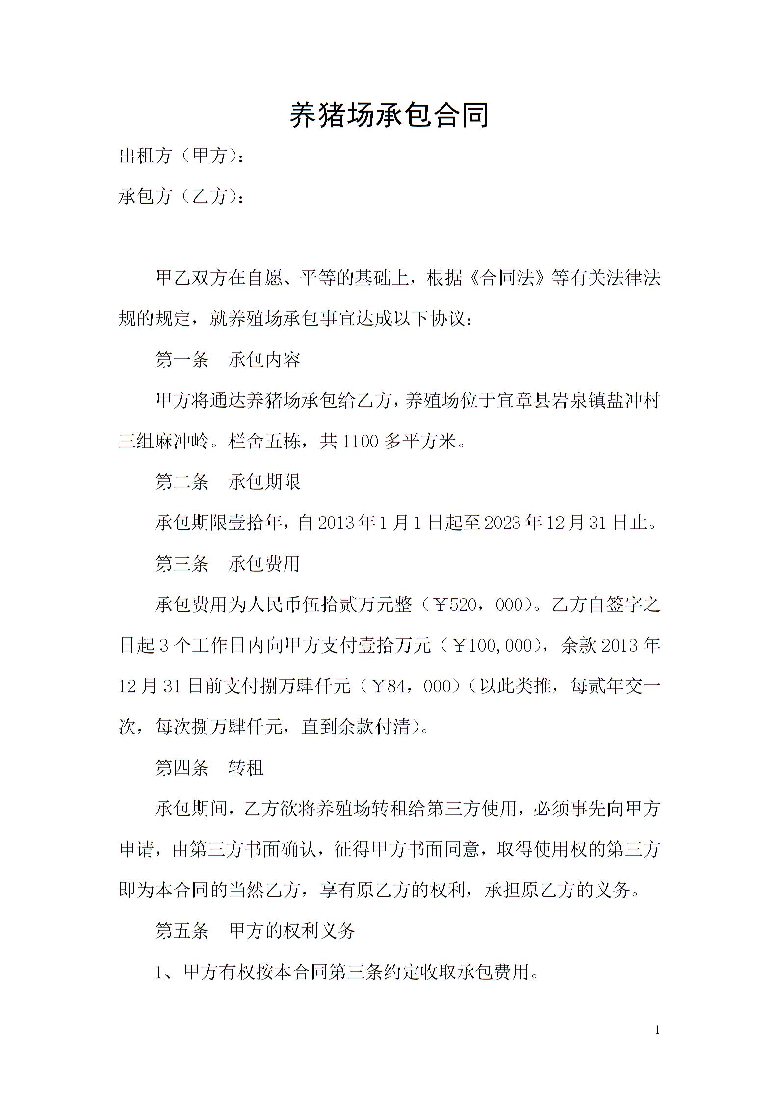 猪场承包合同
