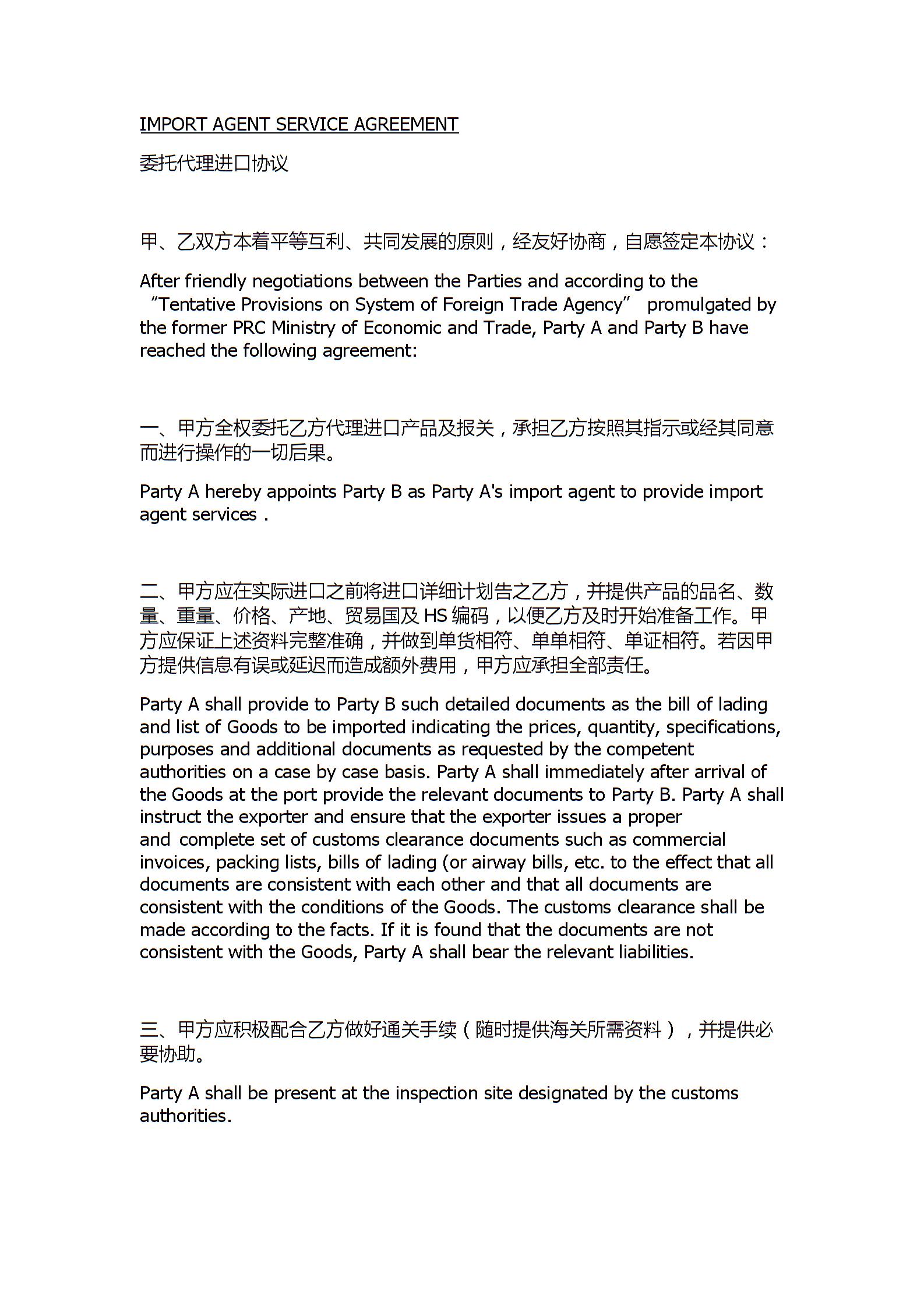 委托代理进口协议(中英文)