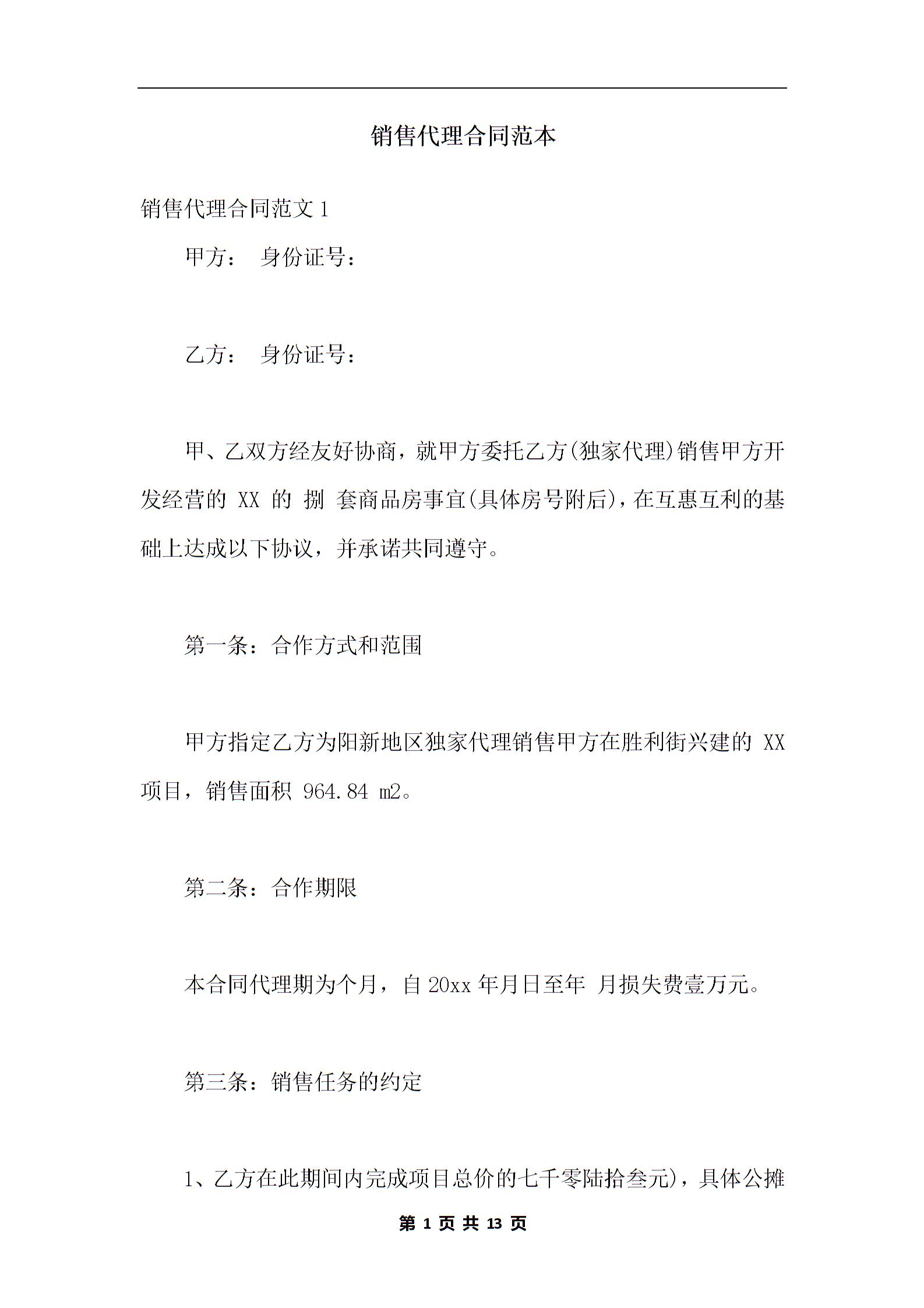 销售代理合同范本_1