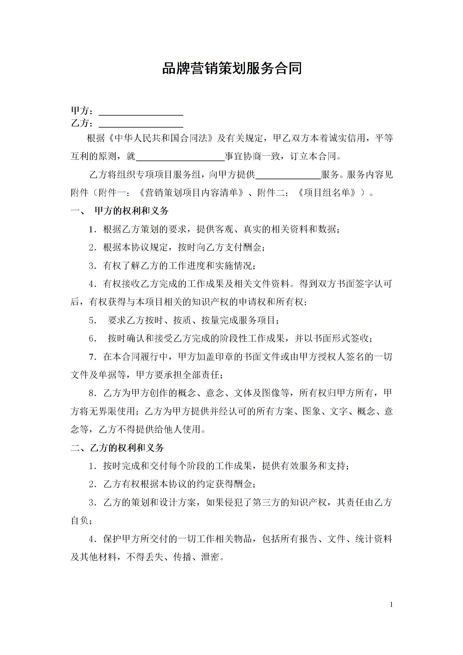 品牌营销策划服务合同