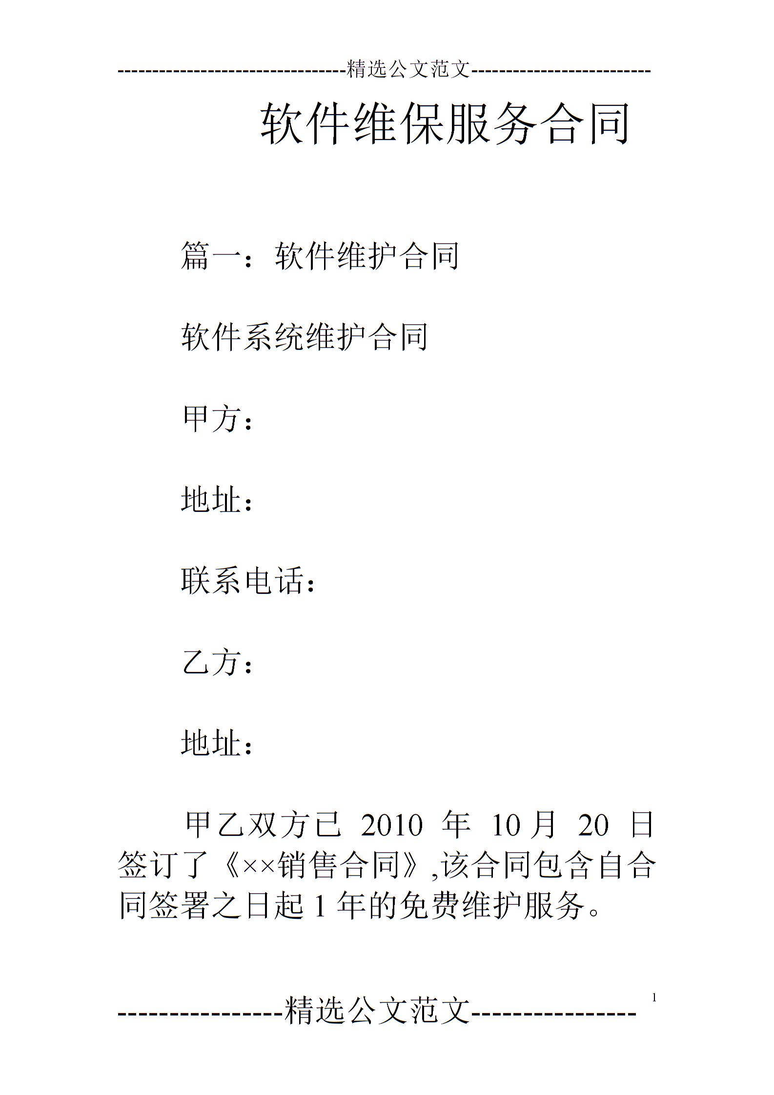 软件维保服务合同