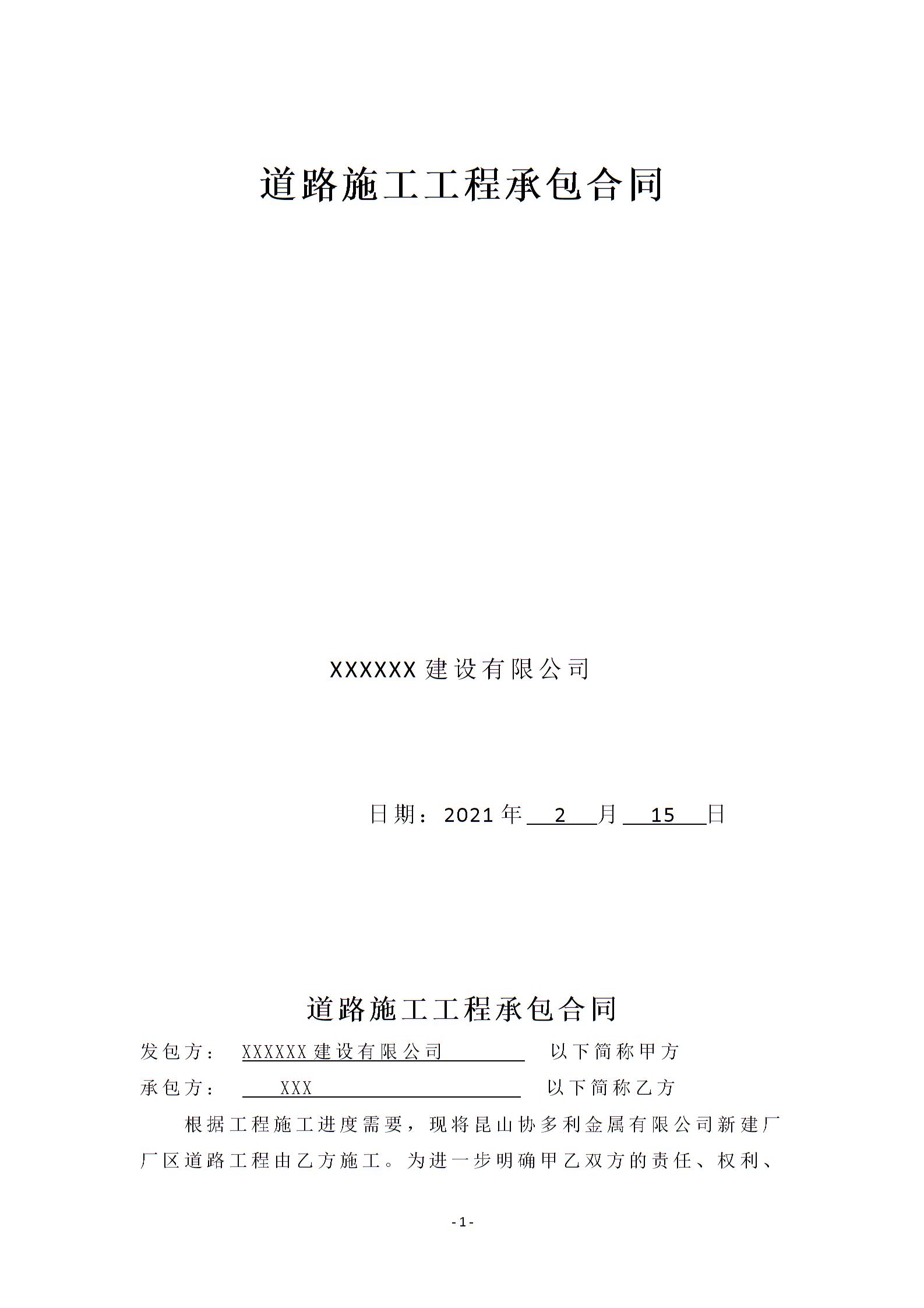 道路施工工程承包合同1