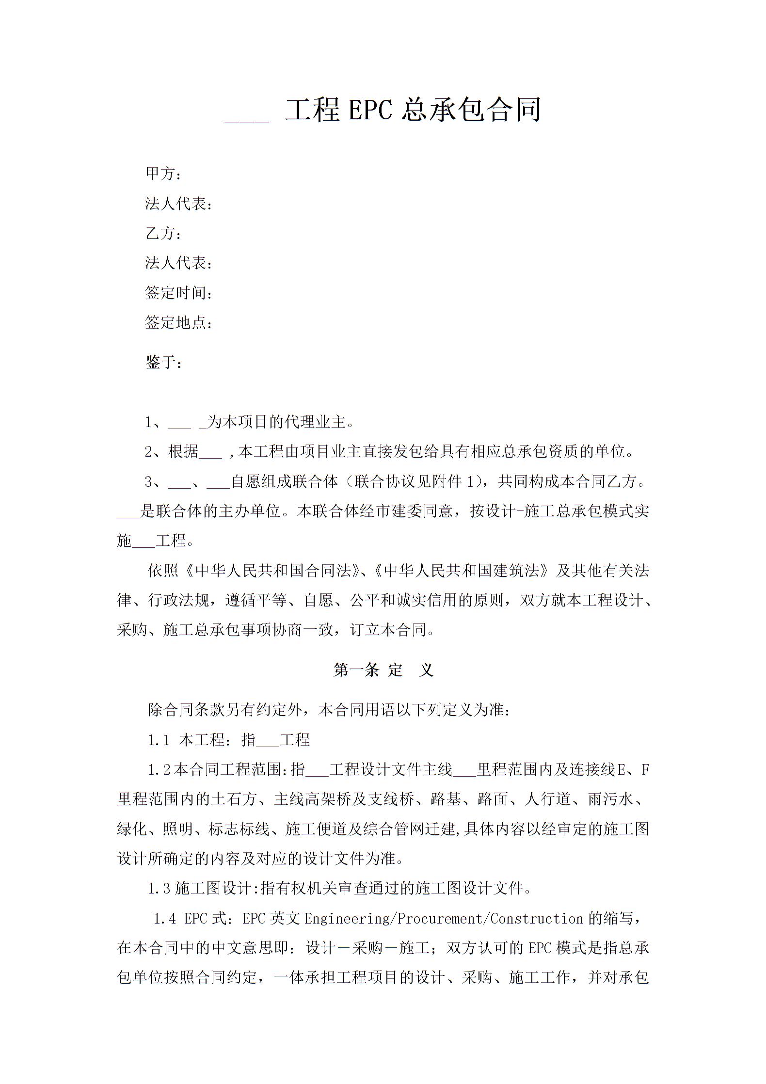 工程EPC总承包合同