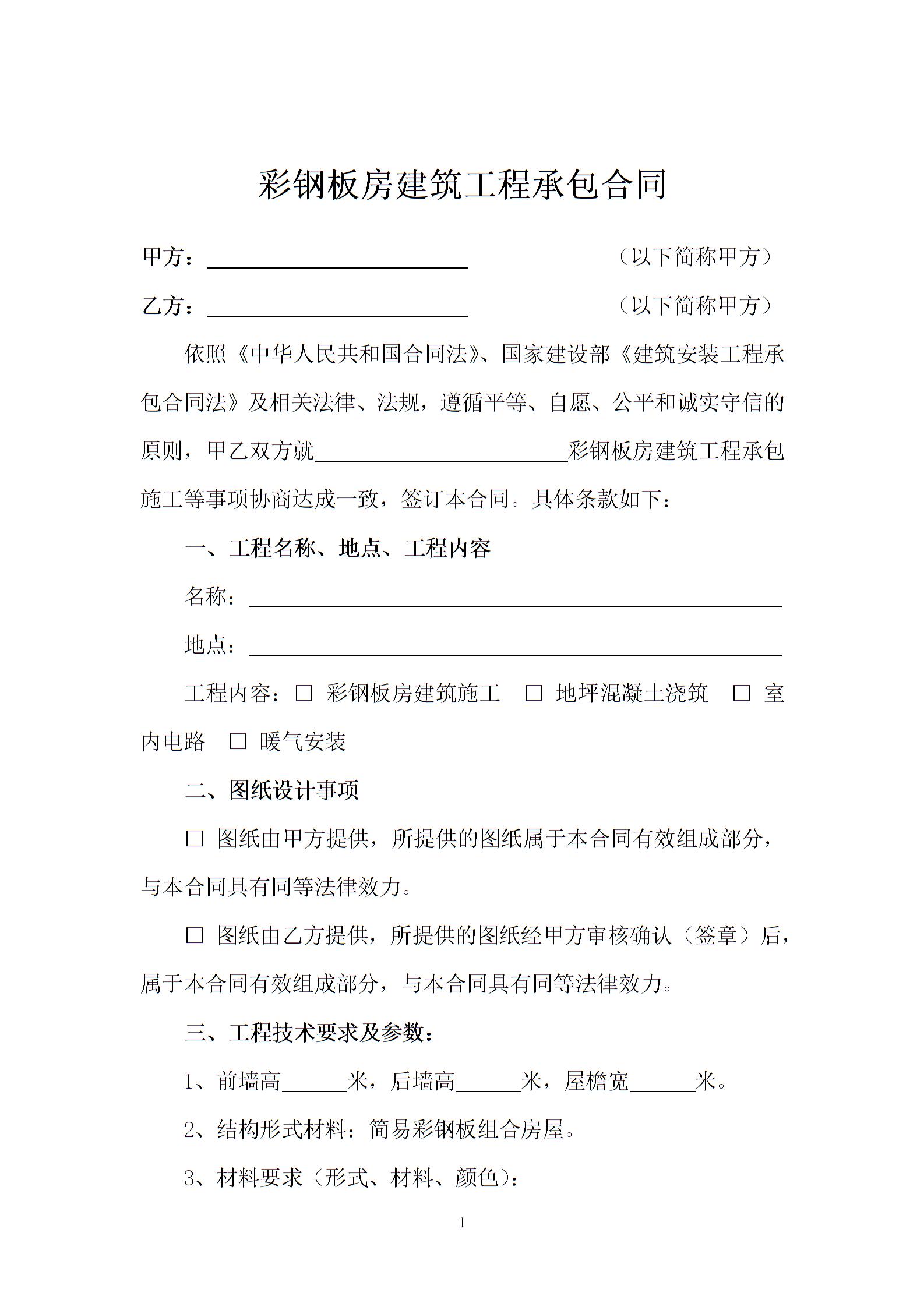 彩钢板房建筑工程承包合同