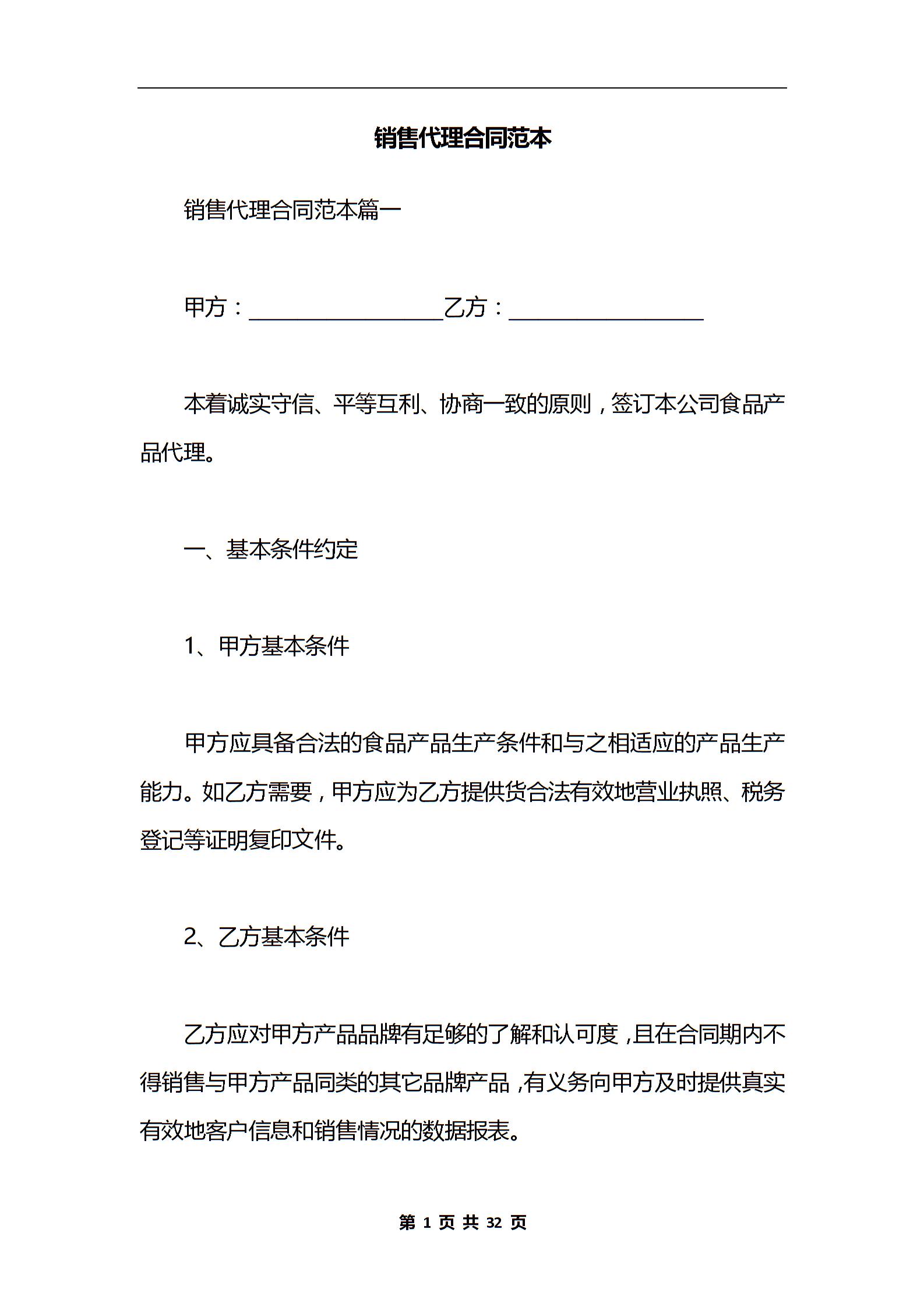 销售代理合同范本