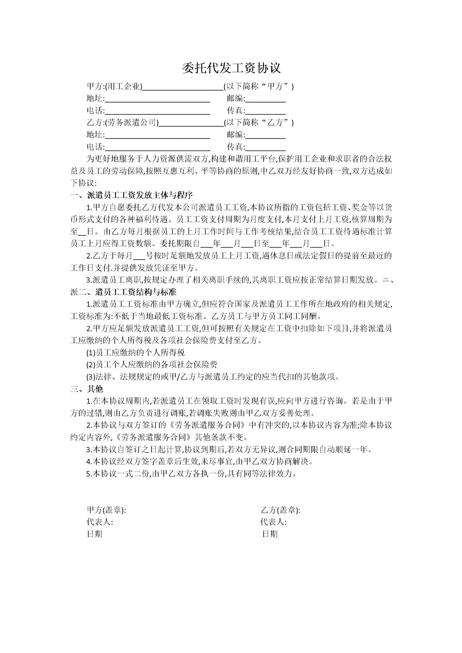 委托代发工资协议