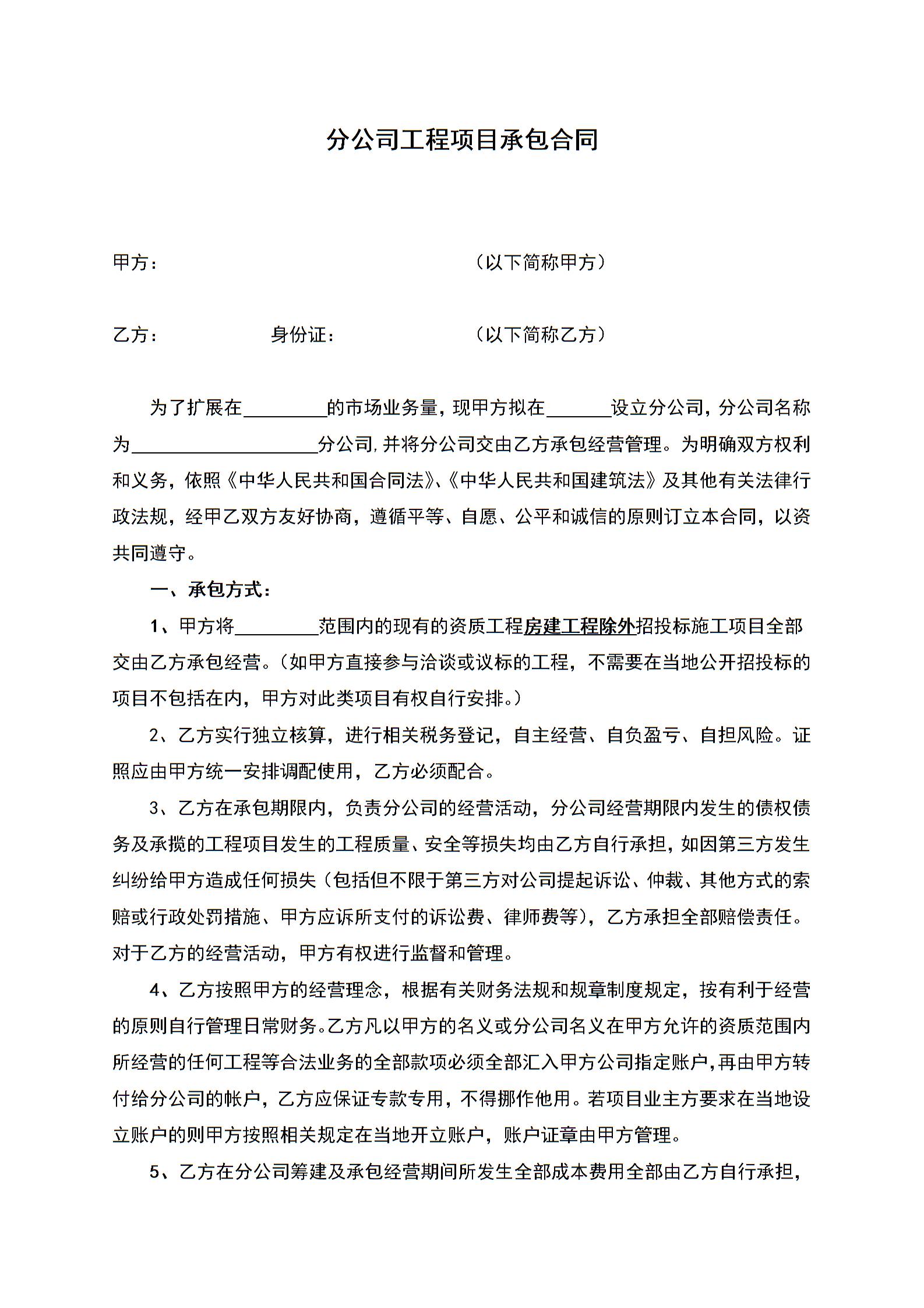 分公司工程项目承包合同