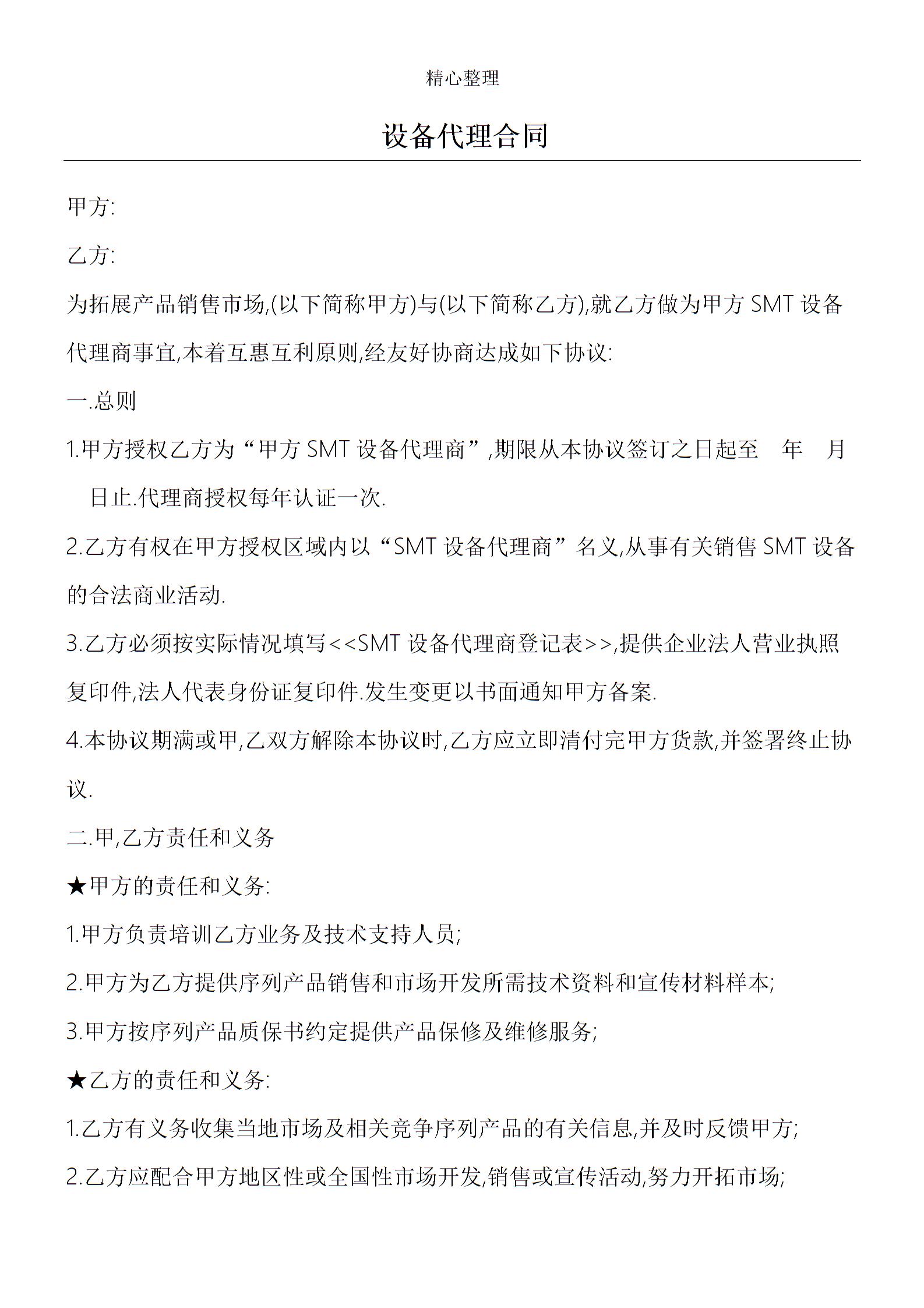设备代理协议模板合同