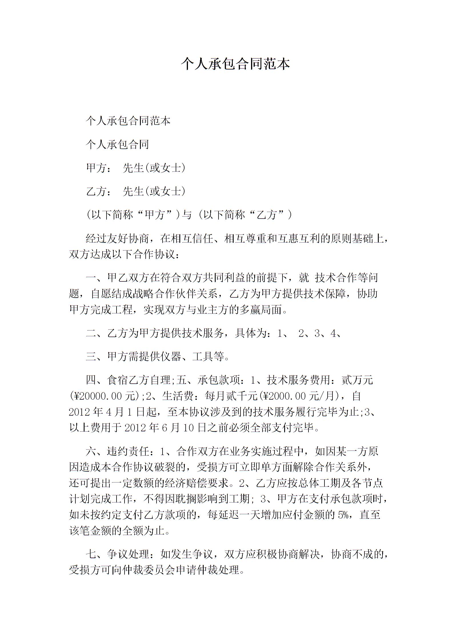 个人承包合同范本