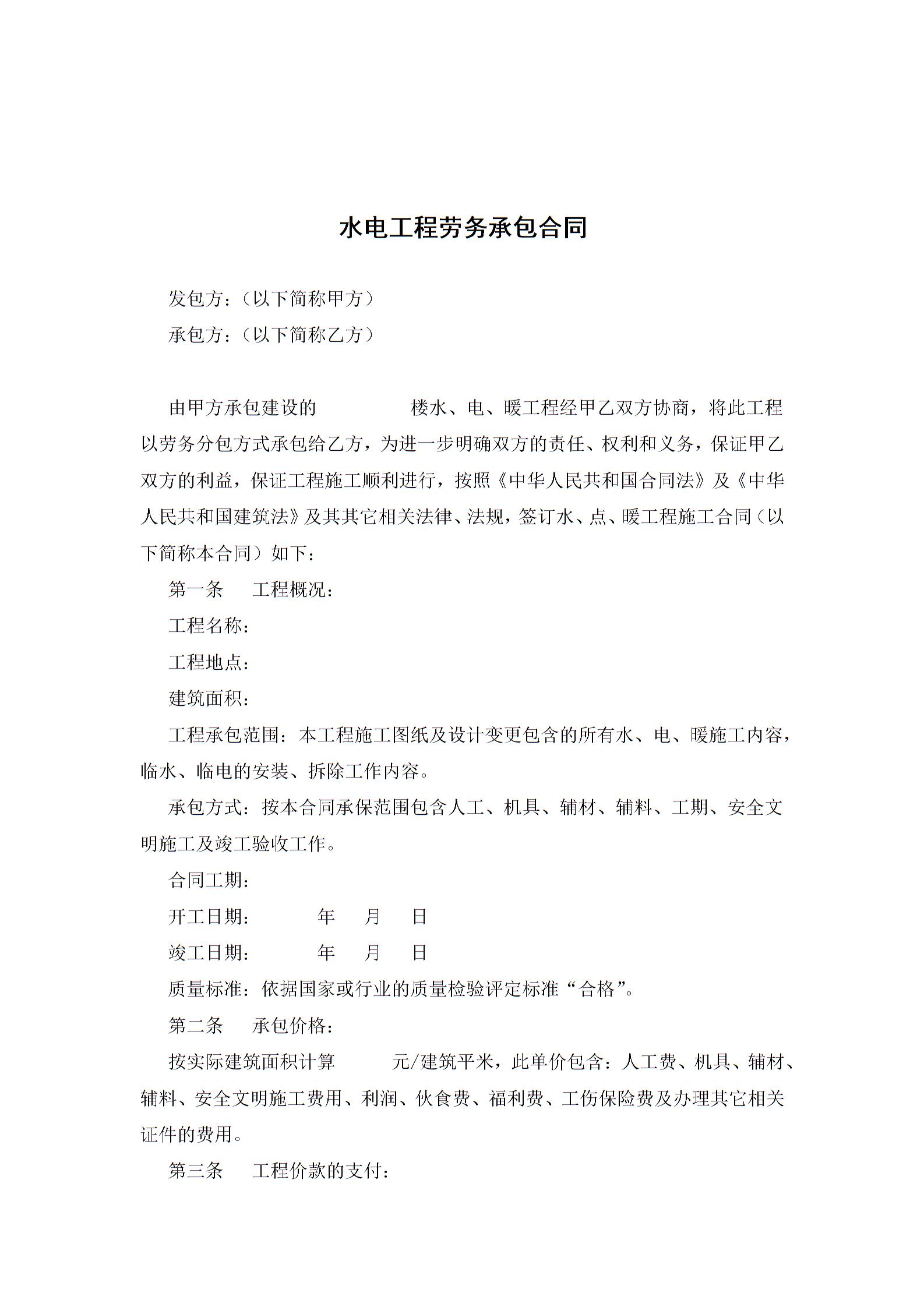 水电工程劳务承包合同