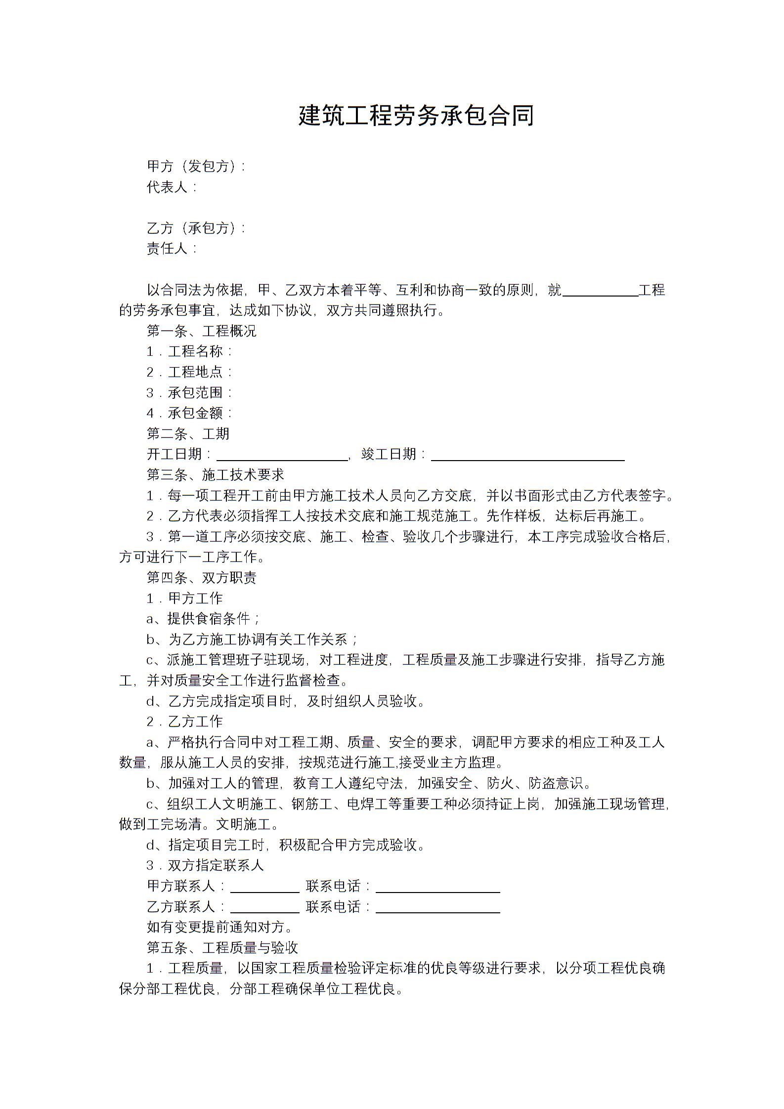 建筑工程劳务承包合同