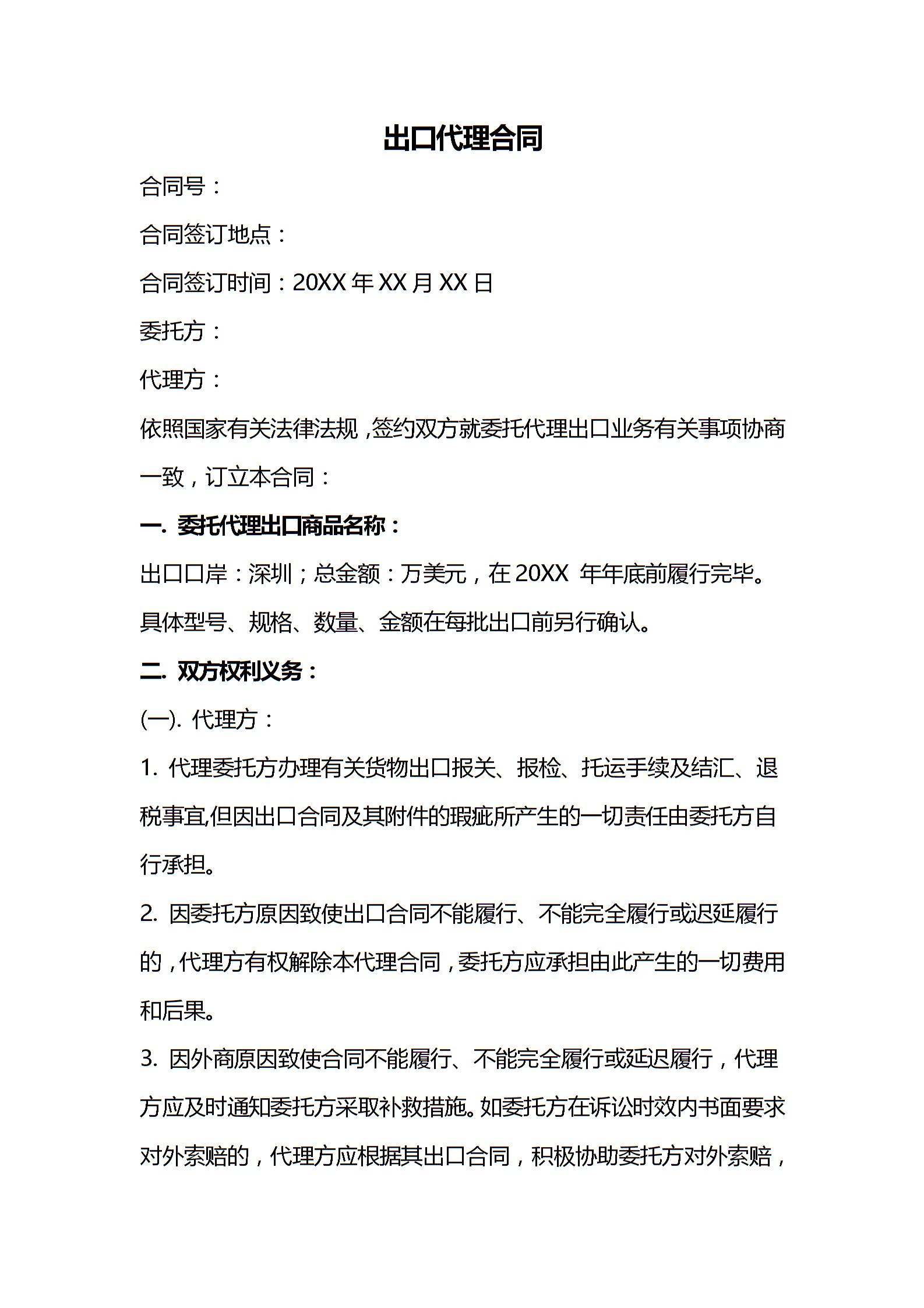 出口代理合同