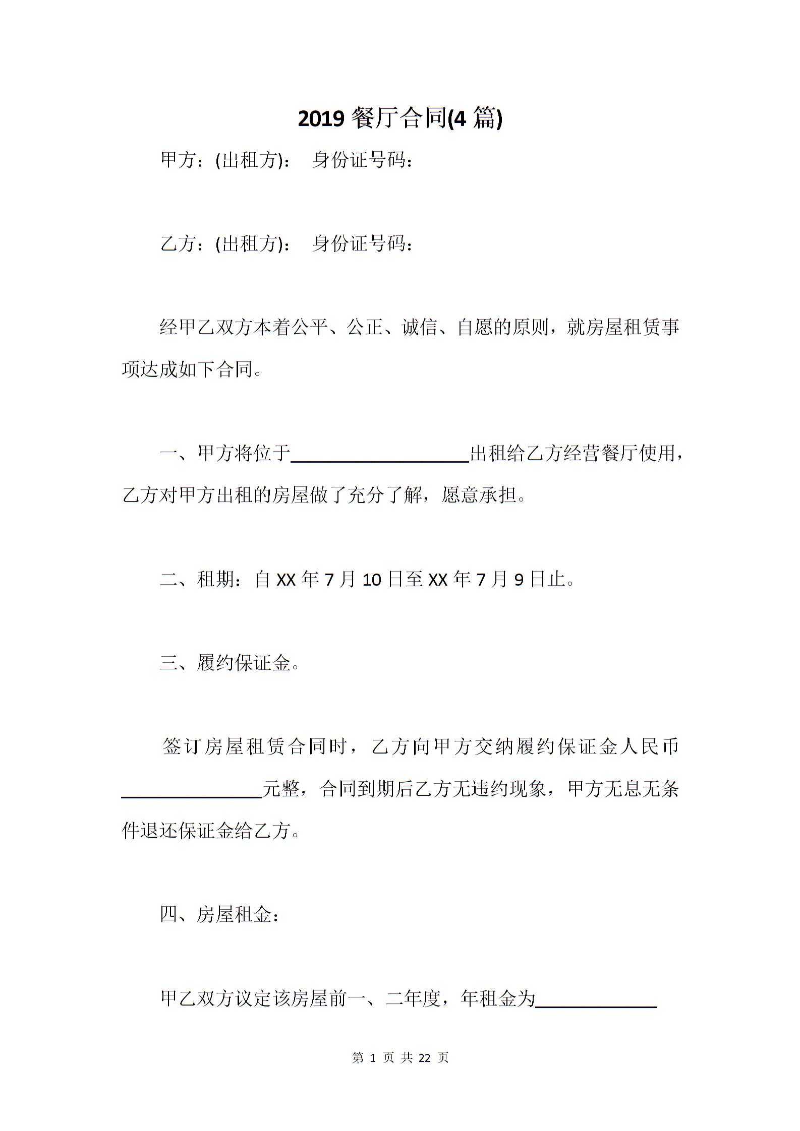 餐厅承包合同(4篇)