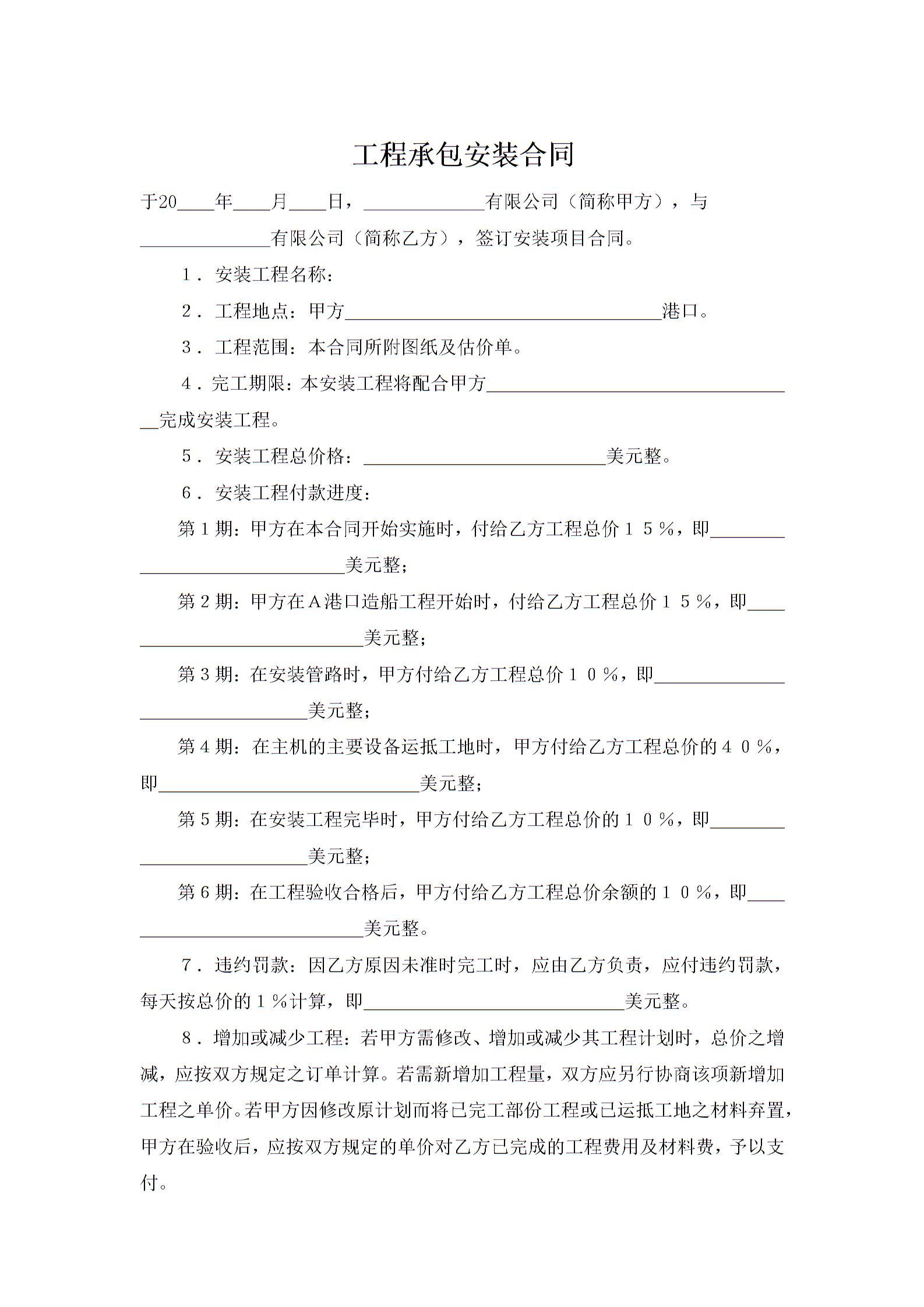 工程承包安装合同
