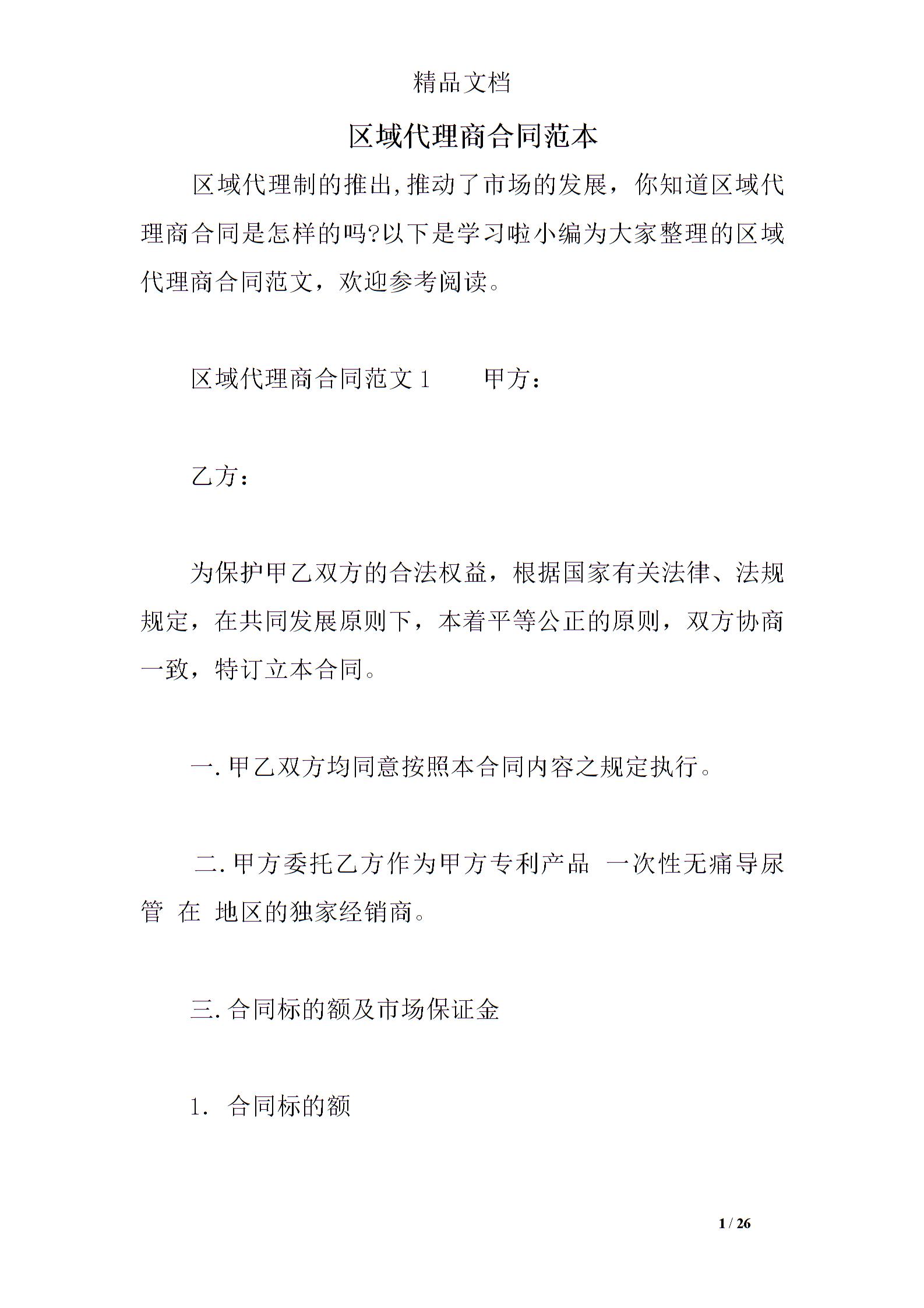 区域代理商合同范本