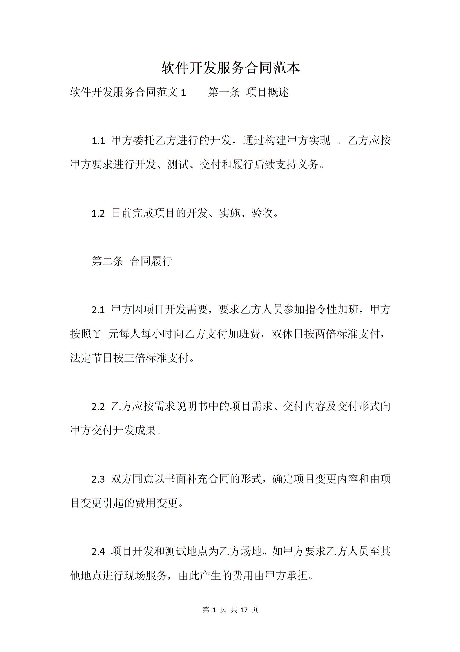 软件开发服务合同范本