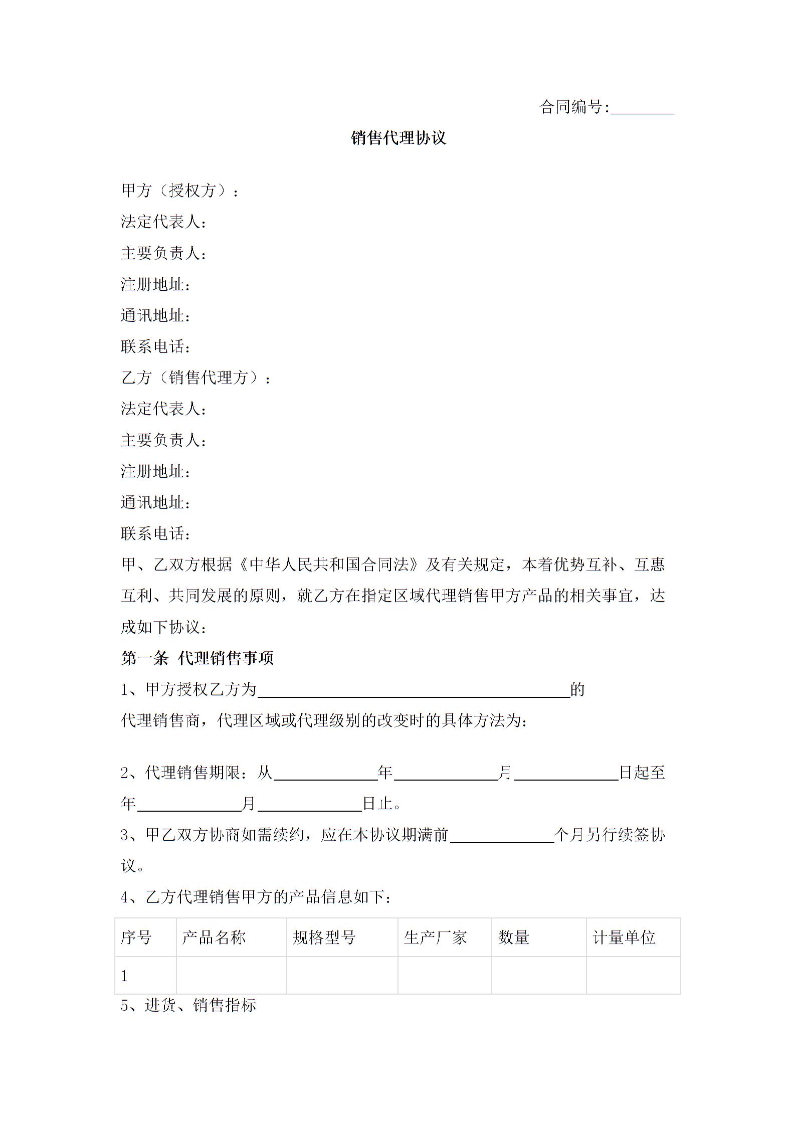 销售代理合同