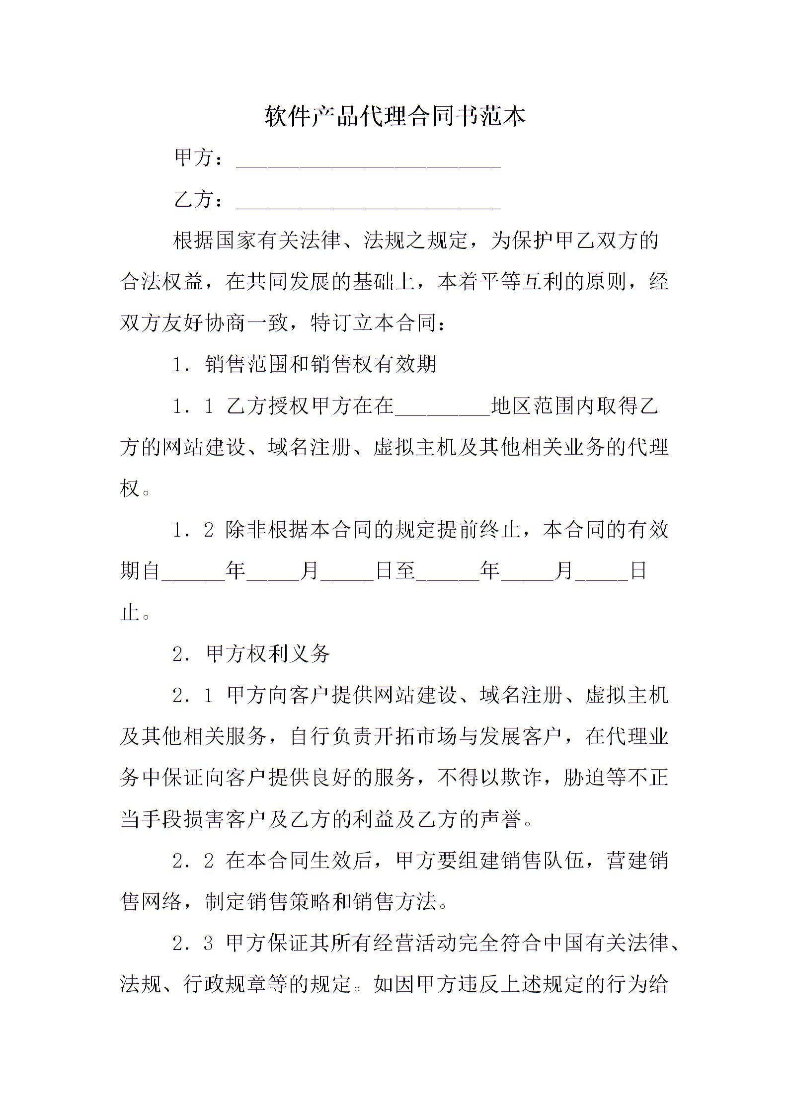 软件产品代理合同书范本