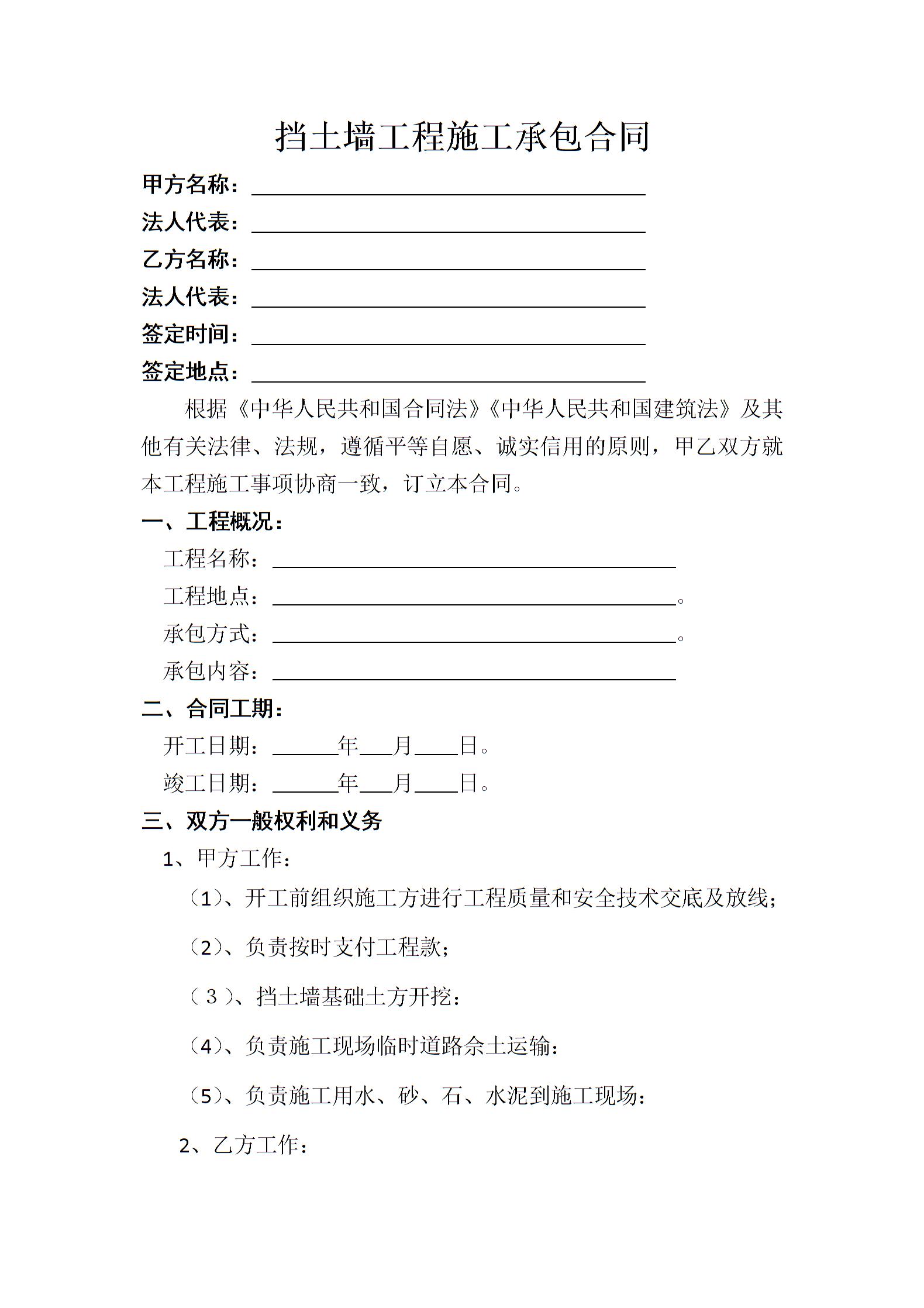 挡土墙工程施工承包合同