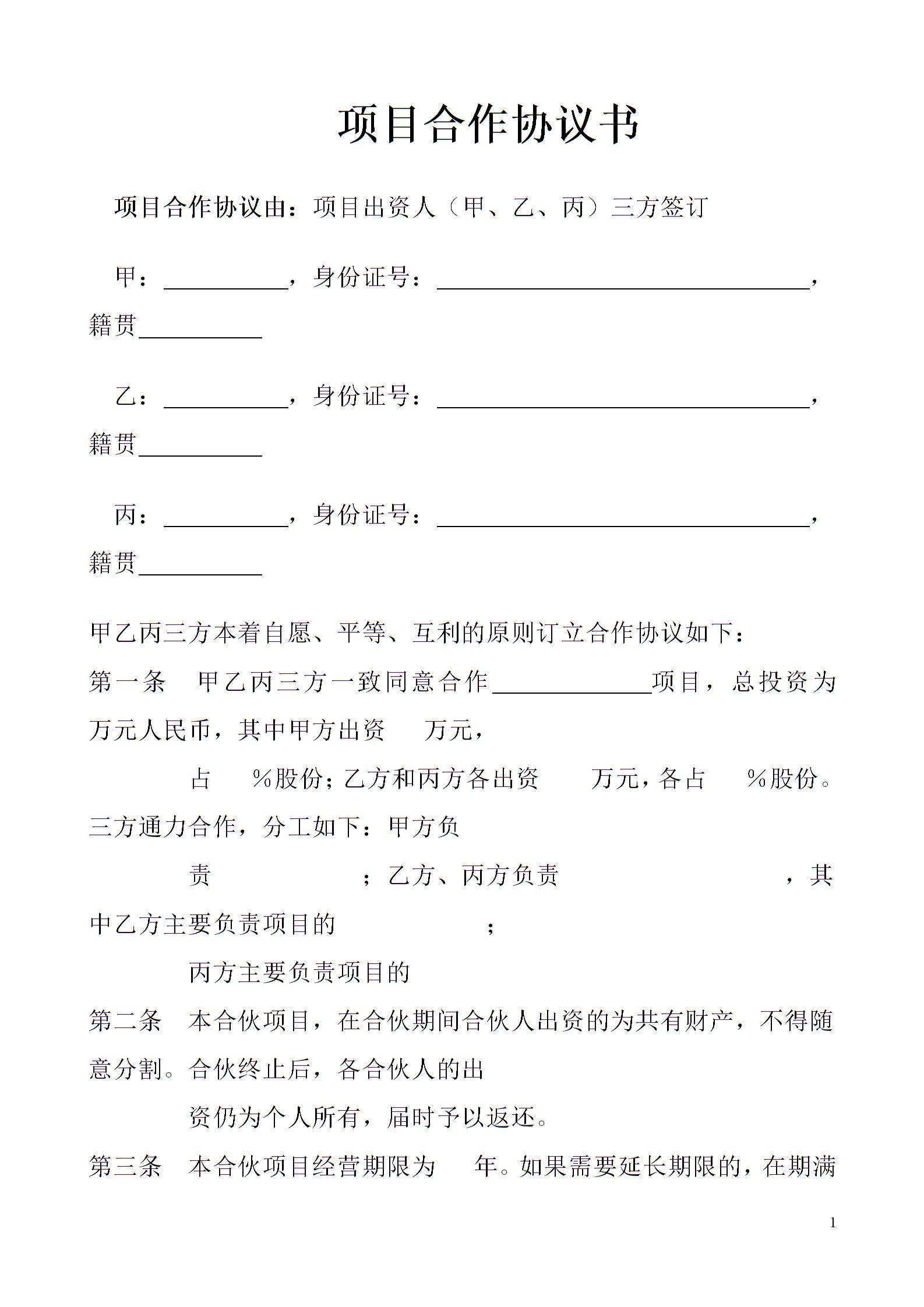 项目合作协议书范本1