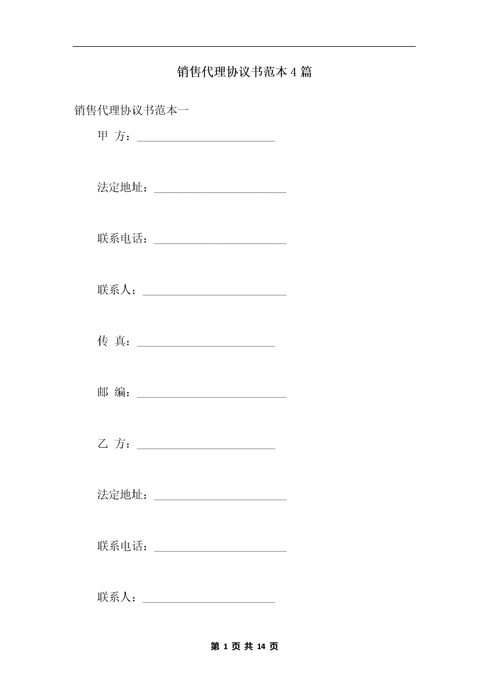 销售代理协议书范本4篇