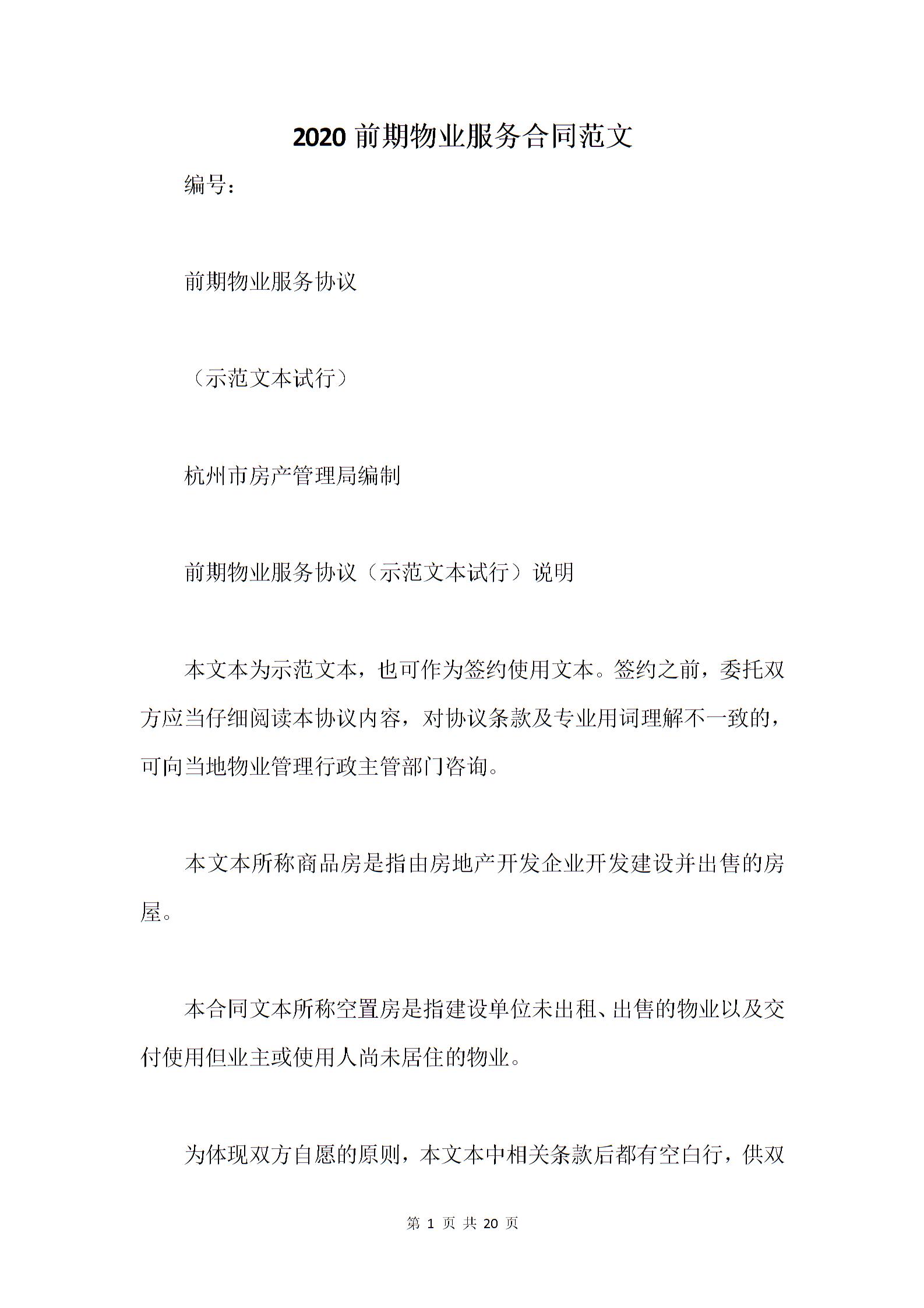 2020前期物业服务合同范文