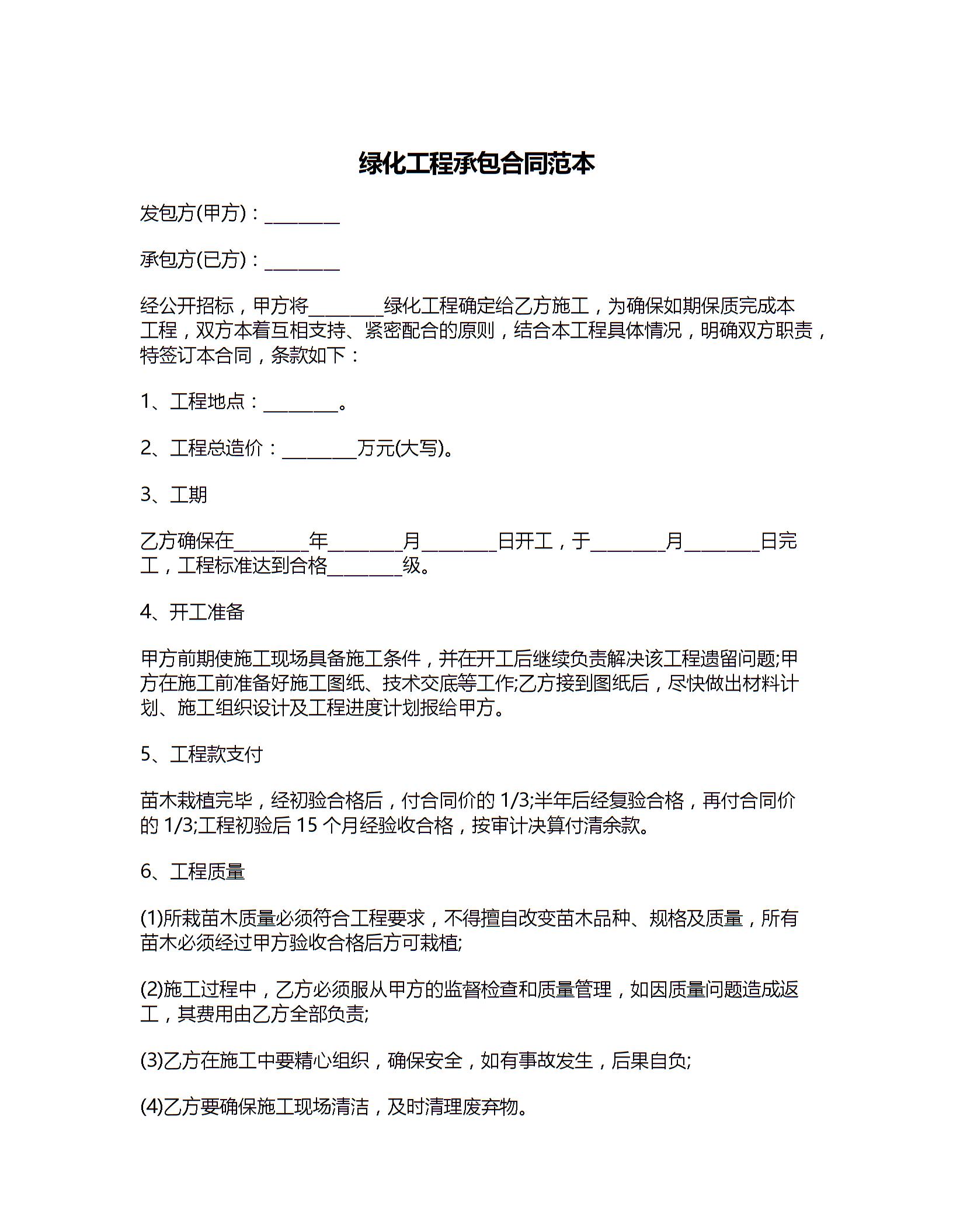 绿化工程承包合同范本