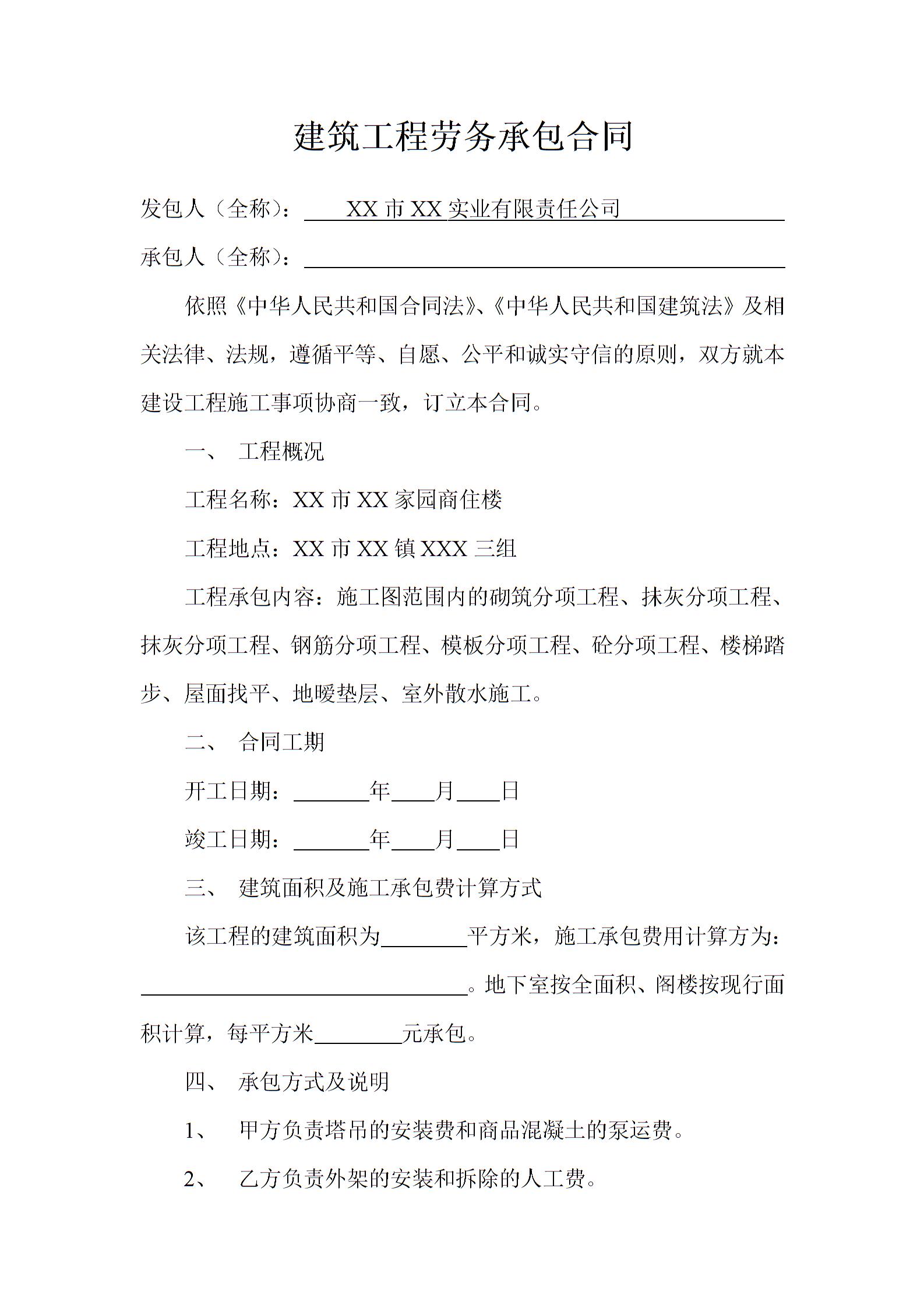 建筑工程劳务承包合同律师拟定版本