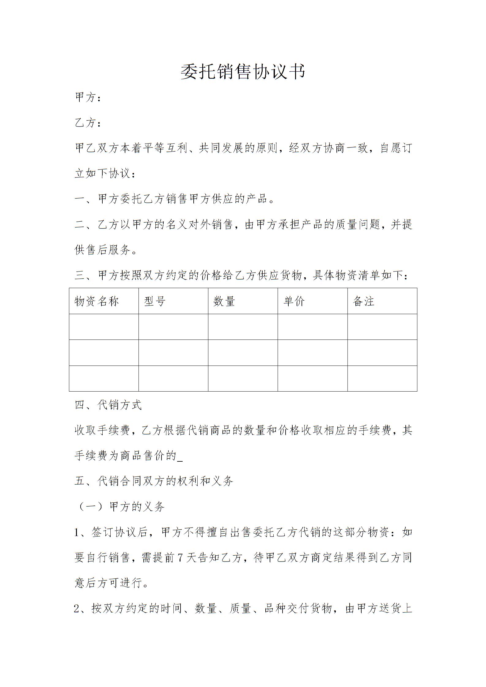 63委托销售协议书