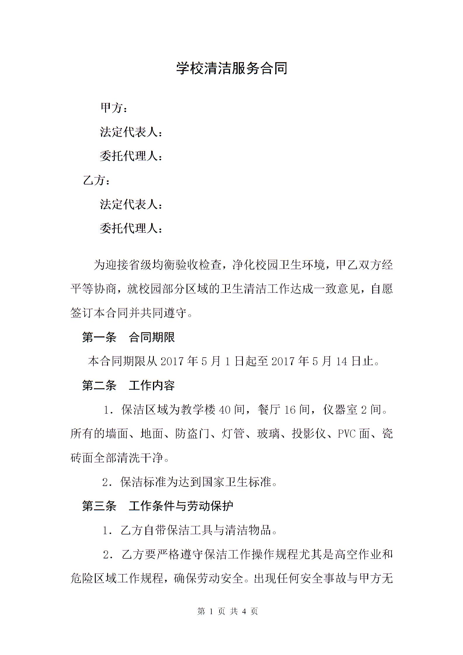学校保洁服务合同