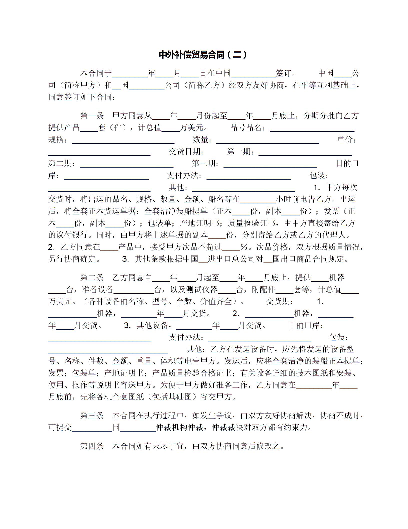 中外补偿贸易合同(二)